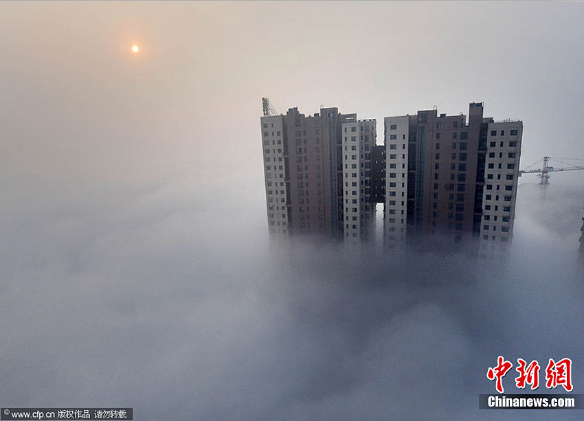 10月9日早上6点多,一场罕见的“平流雾”袭击合肥。合肥城市的建筑掩映在浓雾中异常壮观。王长丰 摄 图片来源:CFP视觉中国