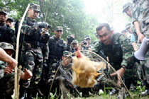 10月11日,中泰陆军特种部队反恐联合训练交流野外生存技巧。“突击-2010”中泰陆军特种部队反恐联合训练于10月6日至20日在广西壮族自治区桂林进行。图为展示用竹子制作的烤架。中新社记者 杜洋 摄