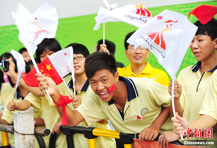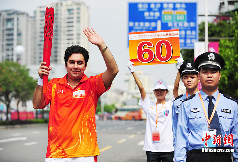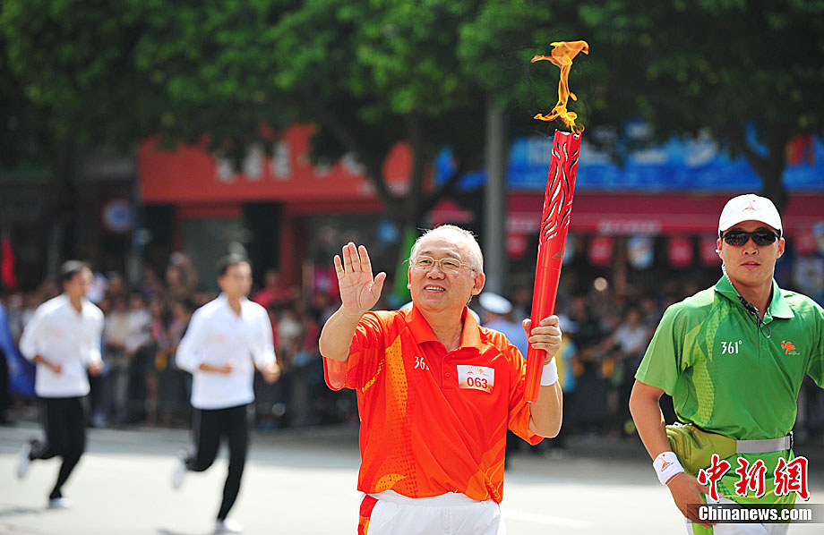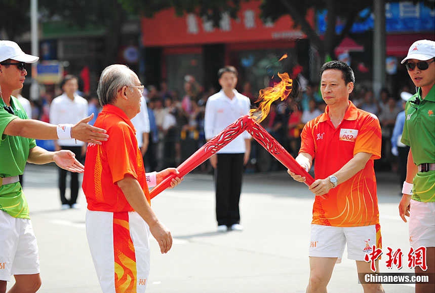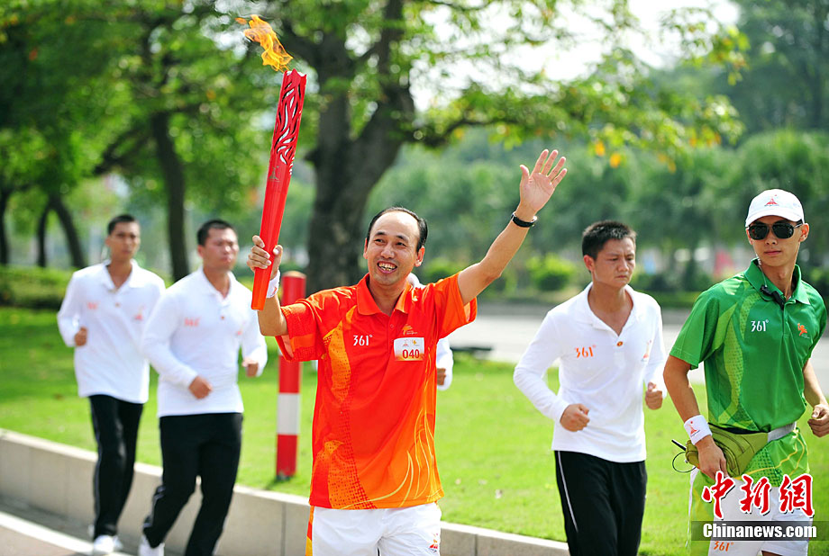 10月13日,备受瞩目的第16届广州亚运会火炬传递在广东省中山市举行。火炬传递从孙文纪念公园出发,火炬手有科学家、音乐家、漫画家、美术家、企业家等80名火炬手接力,全长11.2公里。中新社记者 陈文 摄