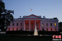 粉红灯光照耀白宫