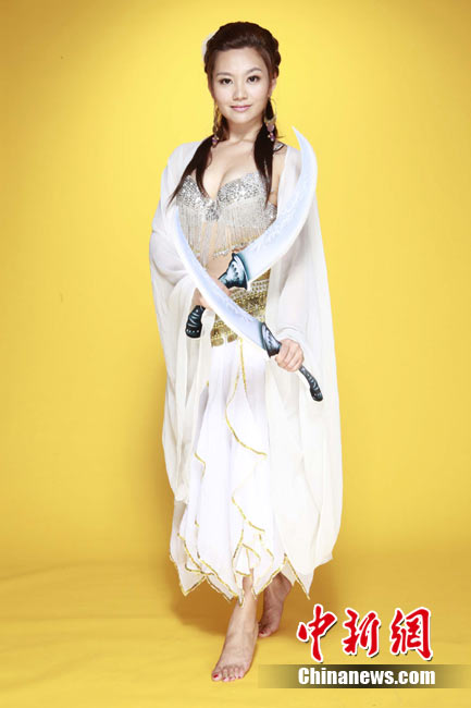近日,足球宝贝刘闻雯为与动作巨星甄子丹合作代言的一款武侠题材网游拍摄广告片。刘闻雯低胸性感,尽显热辣身材。