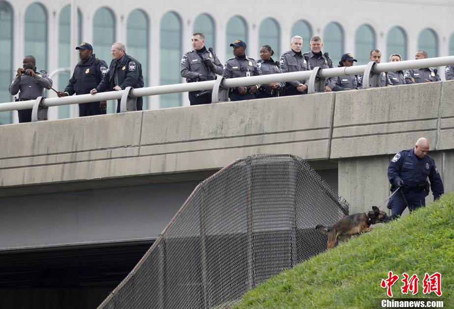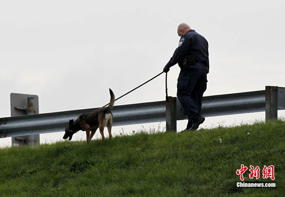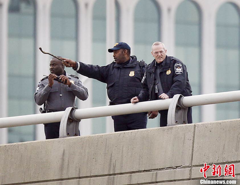 美国军事威力的象征—五角大楼当地时间19日清晨遭到枪击,从一处停车场射出的子弹击中了大楼办公室的玻璃,但未造成人员伤亡。图为调查人员在美国华盛顿五角大楼附近搜寻证物。