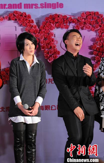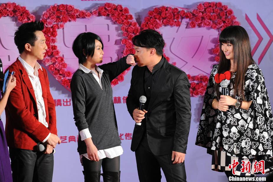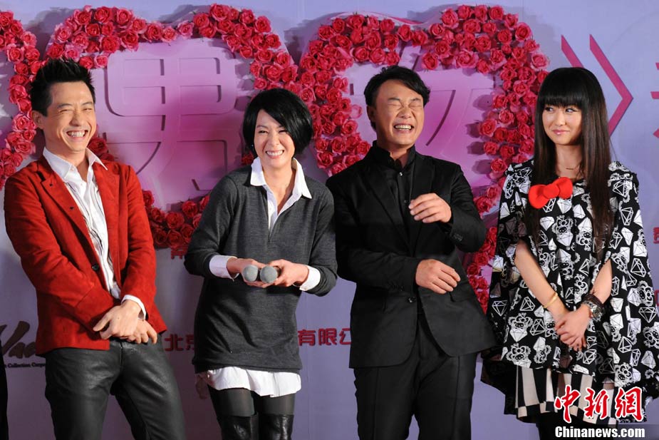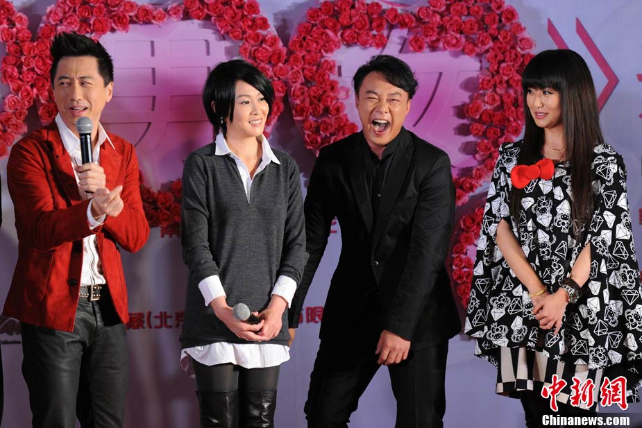 10月19日,爱情电影《隐婚男女》在北京举行开机仪式。香港新生代导演叶念琛携主演刘若英、陈奕迅、白冰、庾澄庆亮相。《隐婚男女》根据李伯男执导的同名话剧改编。该话剧在全国巡演100多场,已成为知名的品牌。娱乐圈好男人代表陈奕迅此次担纲男主角,饰演一个表面上看绝对的老实好男人,实际却是不折不扣、深藏不露的“隐婚”一族,与刘若英、白冰在片中有着复杂的感情纠葛。秦岚、林依轮等明星也将客串该片。发布会上笑点不断,主持人“逼问”起隐婚的话题,众星趁机大开玩笑。图为(左起)庾澄庆、刘若英、陈奕迅、白冰在现场嘻笑不断。中新社记者 李学仕 摄