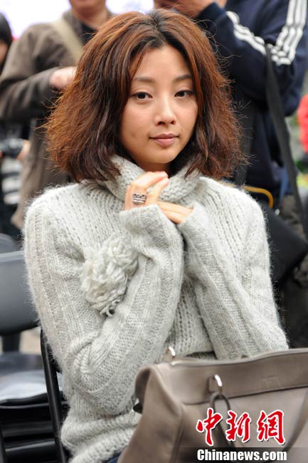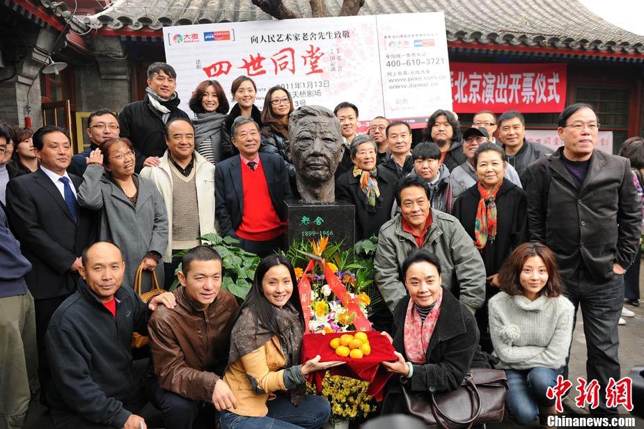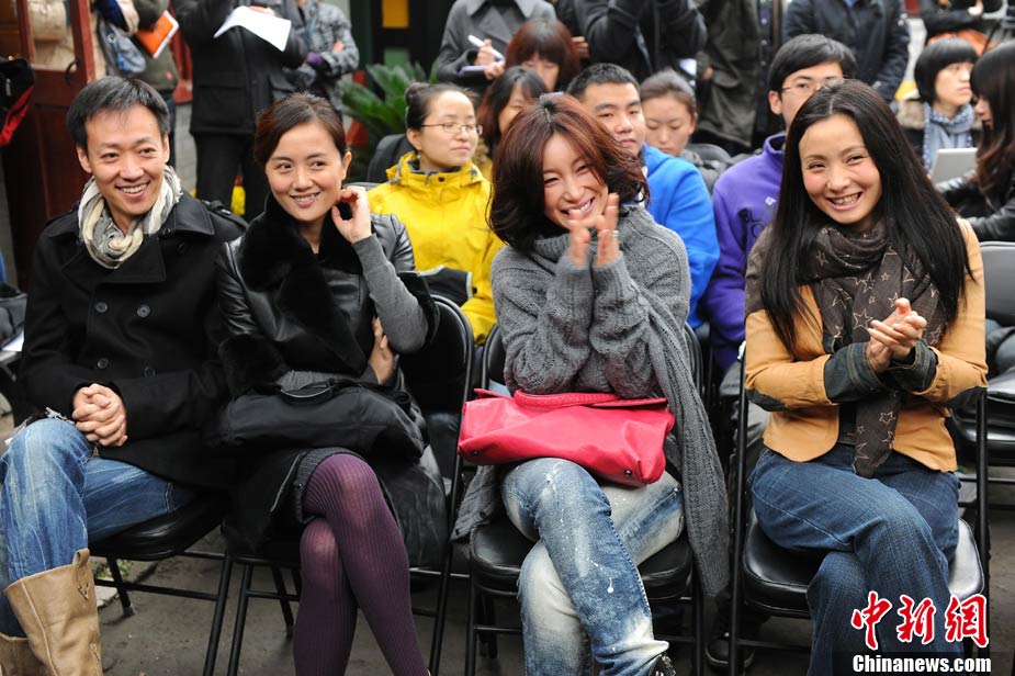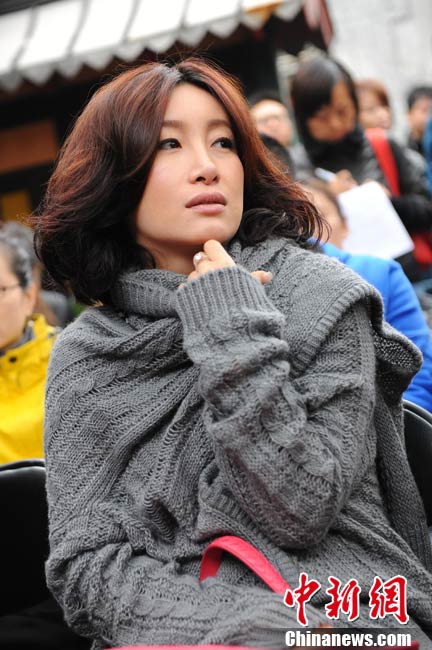 10月19日,由雷恪生、黄磊、朱媛媛、秦海璐、陶虹、殷桃等一众明星出演的国家话剧院大戏《四世同堂》在北京老舍纪念馆举行了赴台湾首演前的饯行会,老舍子女舒乙、舒济送上十个柿子寓意剧组“十全十美、事事如意”。《四世同堂》将于本月30日在台湾国父纪念馆首演,之后,将在深圳、上海、重庆等地展开为期两个月的巡演,并于明年的1月13日亮相北京天桥剧场。图为秦海璐。中新社记者 李学仕 摄