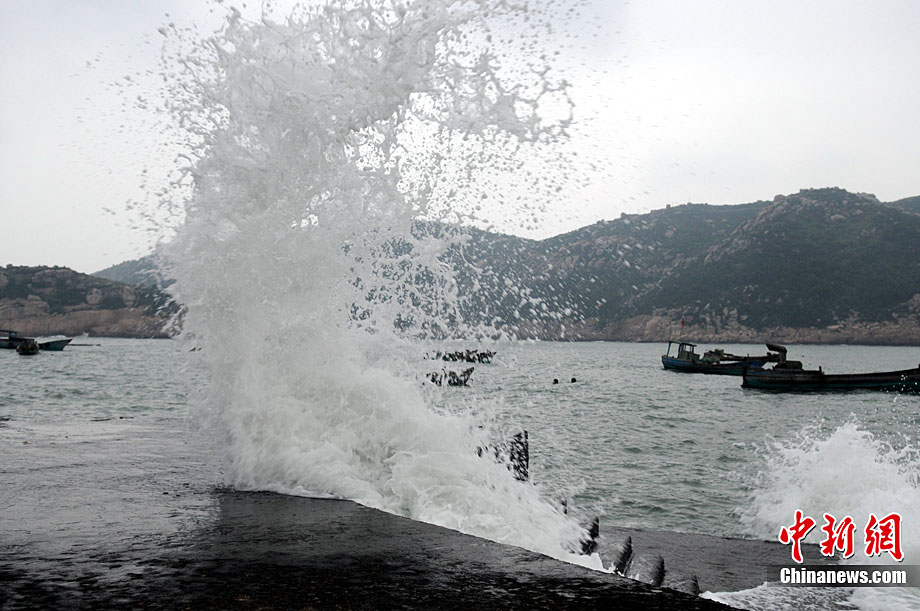 10月20日,在今年第13号超强台风“鲇鱼”的影响下,浙江省温州市南麂岛海面风力增强到9--10级,岸边卷起巨浪。驻守该岛的南麂边防派出所迅速出动抗台应急分队,加强海边巡逻检查,及时劝阻观浪游客远离危险地带。图片来源:cnsphoto 吴水斌 摄