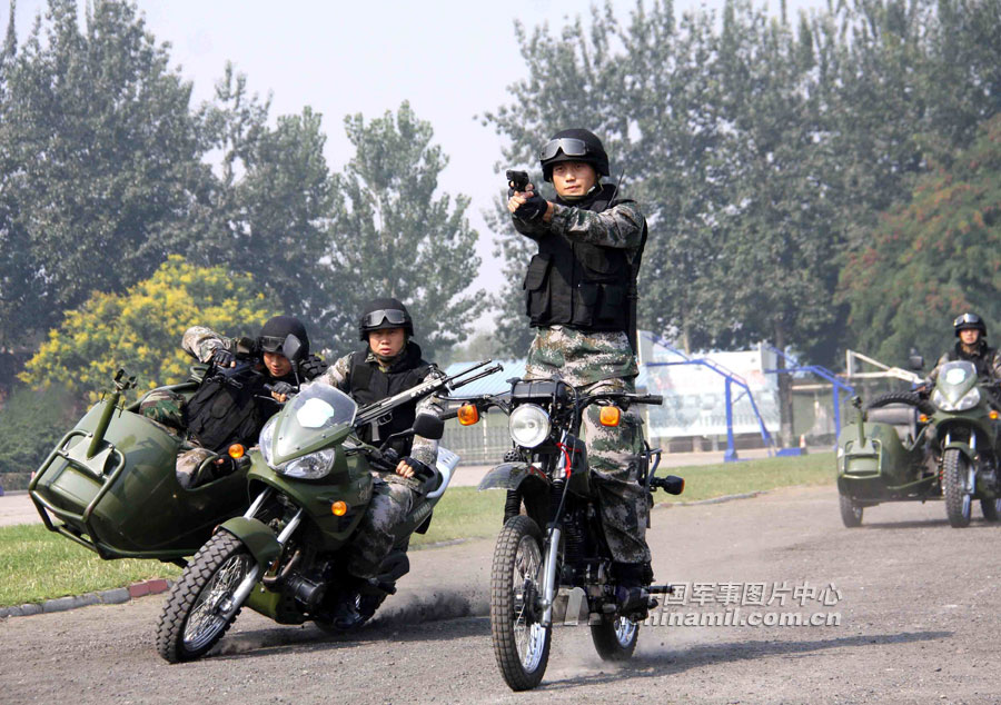 “在风驰电掣的摩托车上,实施精确有效射击;在八九秒内只借助绳索攀爬上十几米的楼房楼顶,擒拿格斗更是以一当十……。”北京卫戍区某特警团警侦连就是这样一支反恐处突应急力量。该连始终着眼担负的特殊使命任务,通过开设模拟训练场、战时心理疏导、网上对抗等演练,强化应急分队在城市综合防卫联合作战的特殊作用,不断提高官兵遂行多样化军事任务的能力。连队先后5次荣立“集体三等功”,连续5年被上级评为“军事训练一级连队”。图片来源:中国军网 赵宝峰 王守瑜 崔长龙 摄
