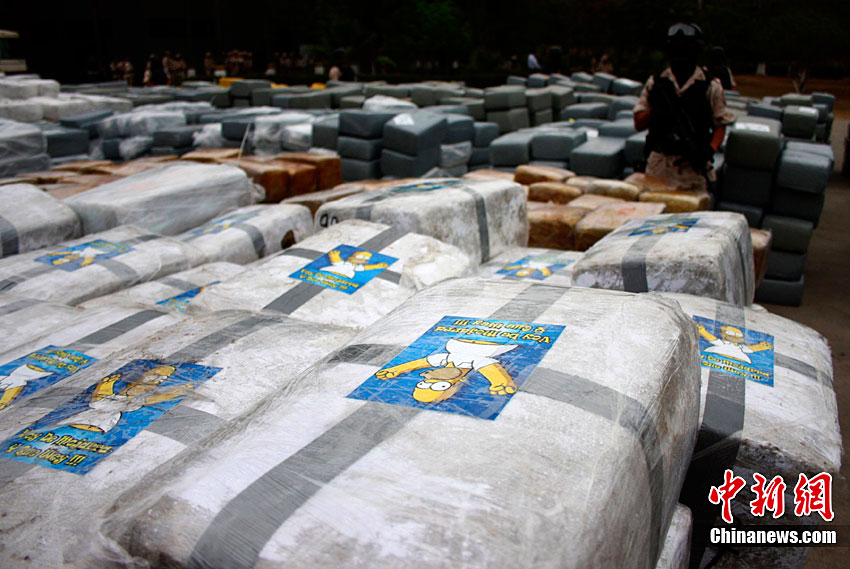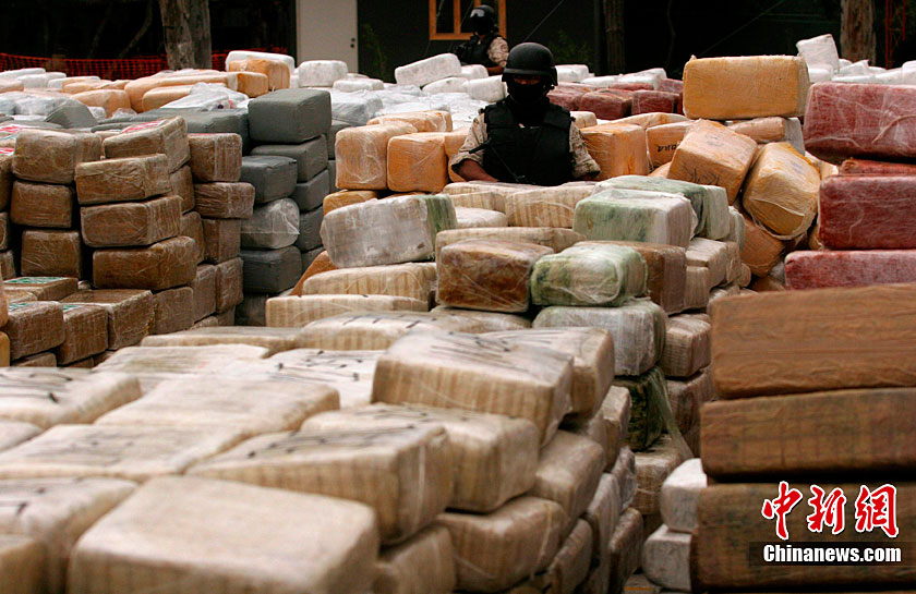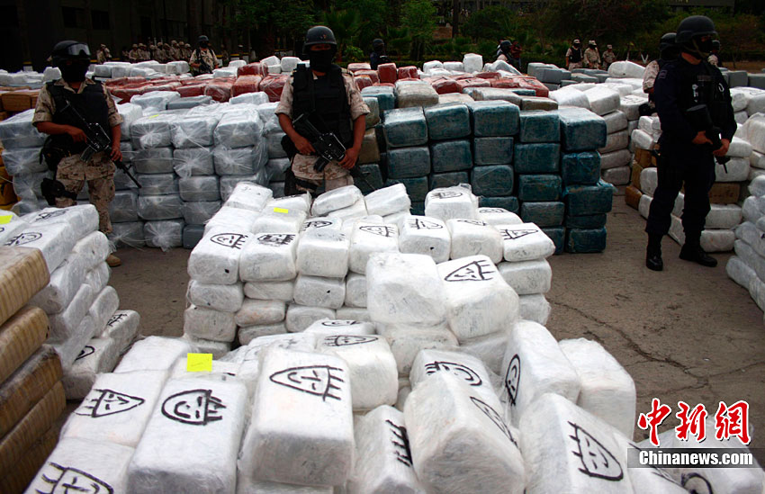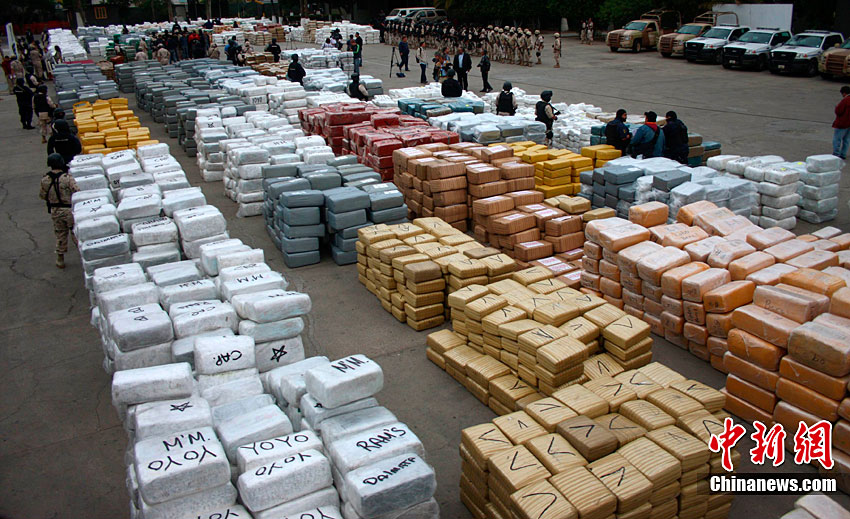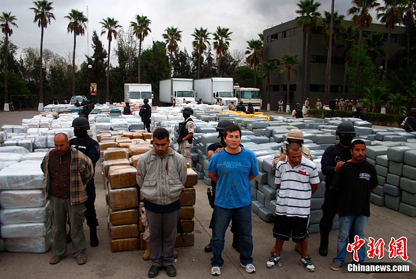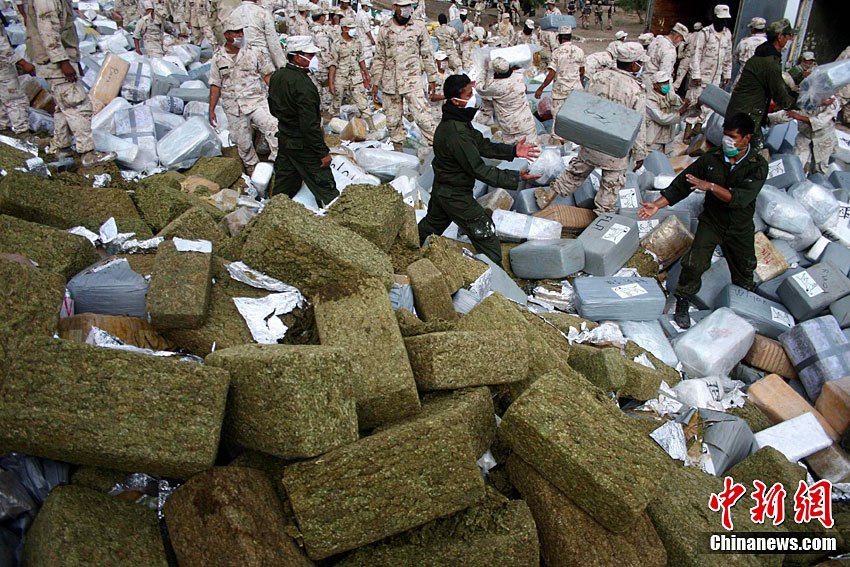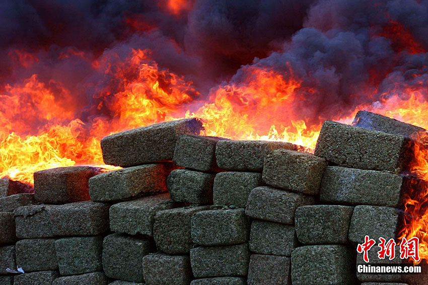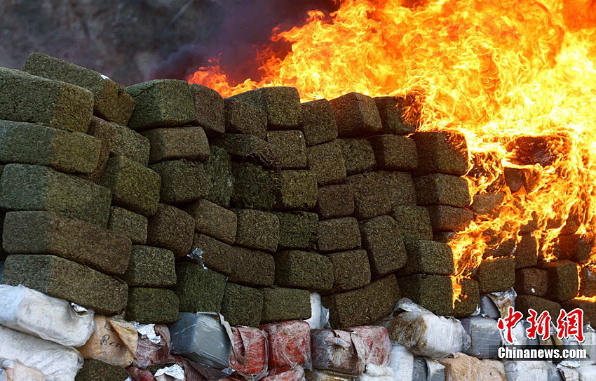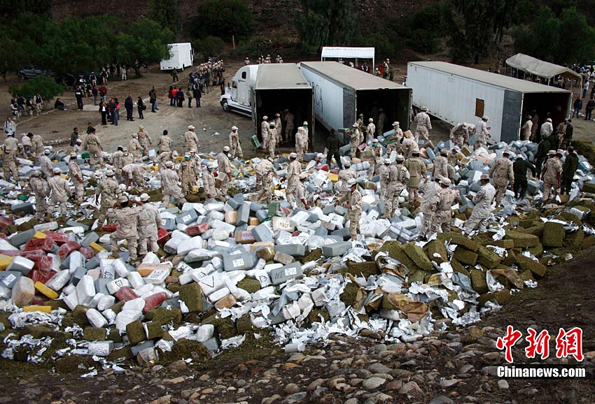 当地时间10月20日,墨西哥在北部边境城市蒂华纳的一个军营内集中销毁了在北部边境缴获的134吨大麻。