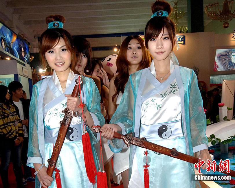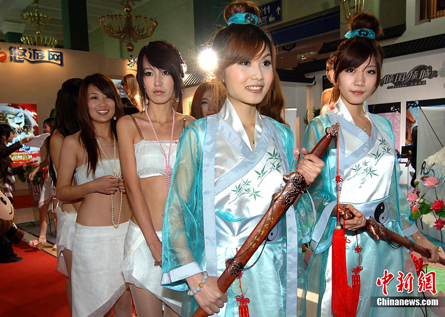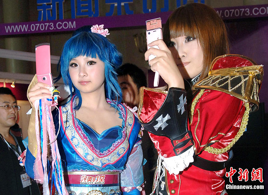 10月21日,以“网络改变未来·文化妆点生活”为主题的“第八届中国国际网络文化博览会”在北京展览馆隆重召开。国内知名的网络文化企业、3G应用产品企业、国内著名网吧企业、知名门户网站、搜索引擎参加了展出。中国移动游戏基地首次携众多合作伙伴共同参展,成为本届网博会最大的亮点,成功吸引了众多媒体及玩家的关注。图为网络美女粉墨登场。中新社记者 邹宪 摄