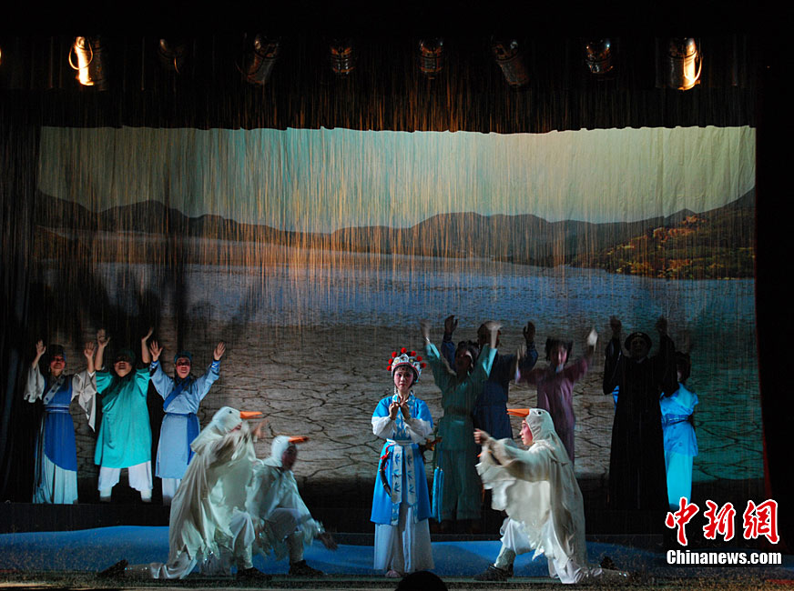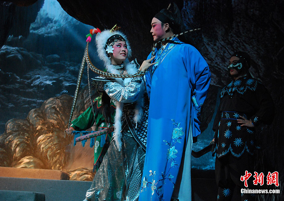 10月22日晚,中国首届临水夫人陈靖姑文化学术研讨会献演剧目,大型神话闽剧《临水夫人陈靖姑》在陈靖姑祖庙所在地——福建古田精彩上演。该剧由古田县闽剧团演出,共有《陈靖姑出世》、《蛇鬼祸害》、《延婚离家》、《结义学法》、《婚礼剑影》、《蛇鬼阴谋》、《哭别婴儿》、《闽江祈雨》、《得道临水》、《天上人间》10个场次,讲述了陈靖姑降妖除魔、救助妇孺的感人事迹。两岸妈祖宫庙代表人和当地信众,共同观看了此次演出。李松 摄