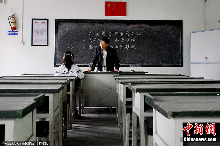 成都郫县清水小学搬迁前夕,一位学生因家中搬迁原因未转校,学校将为其授课到最后。她叫孙悦,读4年级。每天早上8点多,她一个人来到学校,下午4点多,她又一个人回家。只有她的自行车,能一路陪着她。教室里,除了她只有老师。和孙悦一样留守学校的,还有19名老师。老师们早上来到学校的第一件事,是打扫卫生。原来由一个班负责的公共区域,现在完全由老师来负责。位于成都郫县德源镇胜利村的清水小学,全校目前只有1个学生在校读书,老师仍按照原定课表,为其上课。这种类似“家教一对一式”的教学方式,已整整持续了一周。图片来源:CFP视觉中国