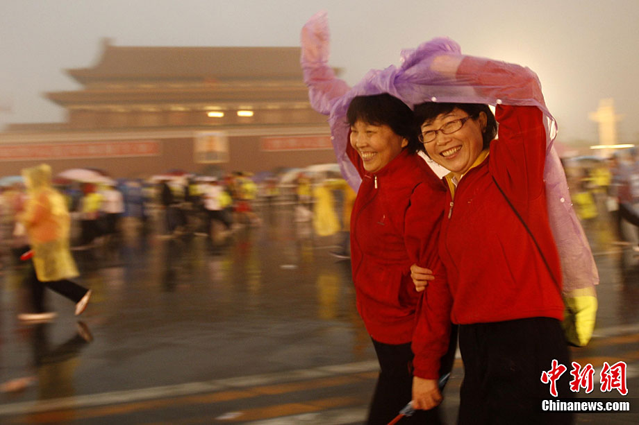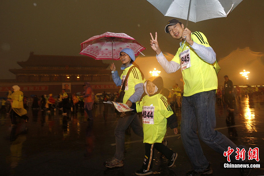 2010北京马拉松赛在雨中鸣枪