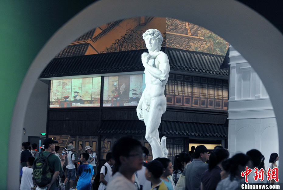 上海世博会的城市足迹馆被誉为“世博园最值钱”的场馆。古巴比伦王国的神门、特洛伊古战场、莫高窟神秘壁画、故宮及外国皇家珍宝、柏拉图、达芬奇、卓别林和大卫雕塑等等,这里荟萃着向世界各著名博物馆借来的大量珍贵文物和镇馆之宝300多件,浓缩展示上下五千年人类城市发展史的时空画卷,堪称世博会史上的奇迹。专家感叹,“仅仅把文物看一遍,就值世博会的门票。”中新社记者 贾国荣 摄