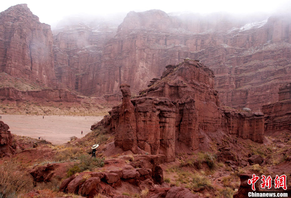 温宿大峡谷是中国西部最美的丹霞地质奇景、中国最大的岩盐喀斯特地质胜景。这里有中国罕见的远古岩盐地质绝景、中国西部奇特的雅丹地质怪景、中国独有的巨型岩溶蚀地质秘境,堪称新疆“活的地质演变史博物馆”。温宿大峡谷主要由库都鲁克谷、阿奇克苏谷两条巨大蜿蜒的峡谷组成,其间分布有千余条形态各异的支谷,旅游观光区域达到了200余平方公里,喀斯特地貌、丹霞地貌、雅丹地貌、次雅丹地貌、盐丘底劈构造地貌分布在峡谷之中,其地质构造的多样性、复杂性和人文景观的独特性极具视觉冲击力。中新社记者 赵隽 摄