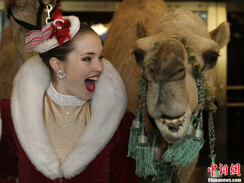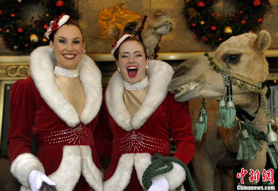 10月26日,美国“火箭女郎”舞蹈团携骆驼、绵羊等动物一起出现在纽约无线电城前,为即将到来的圣诞大汇演造势。今年的无线电城圣诞大汇演将于11月5日至12月30日举行。