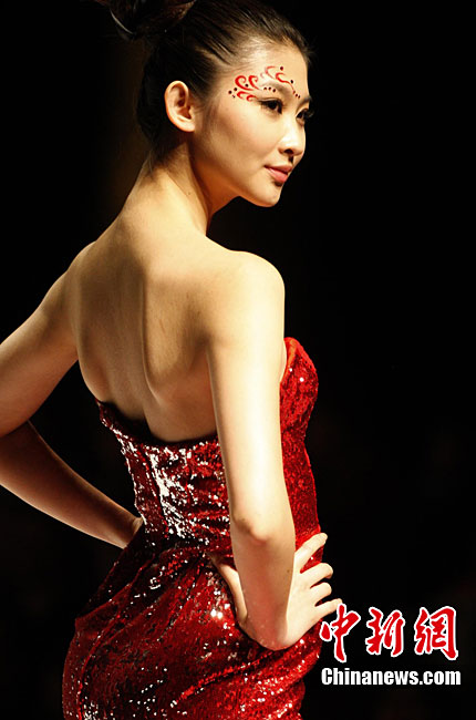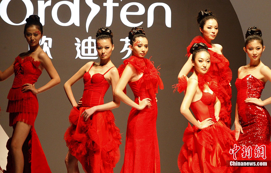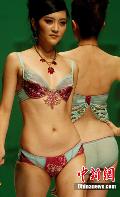 10月28日, 2010“欧迪芬杯”中国内衣设计大赛在北京举行,20位冲过初赛、复赛层层挑战的选手们,聚集在中国内衣设计的最高赛场,用创意与灵感展开激烈角逐。图为模特展示“明门之秀”主题内衣设计作品。中新社记者 钱兴强 摄