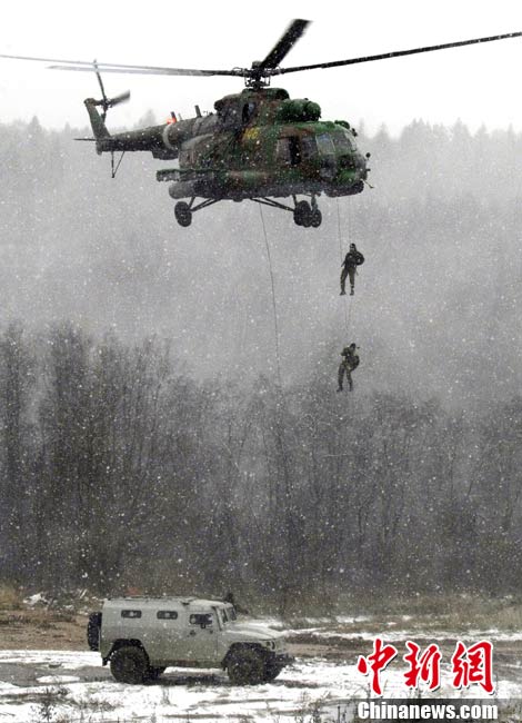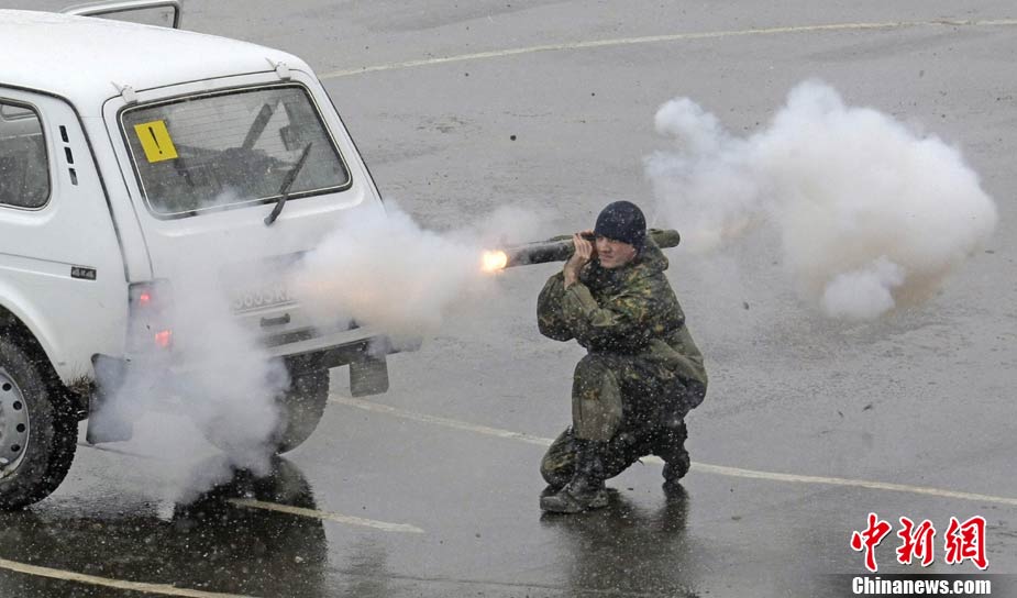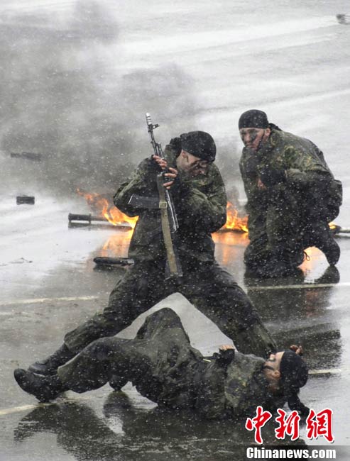 10月29日,俄罗斯莫斯科郊区,俄罗斯特警在Interpolitex-2010国际警察与防务技术展上进行示范战术演练。