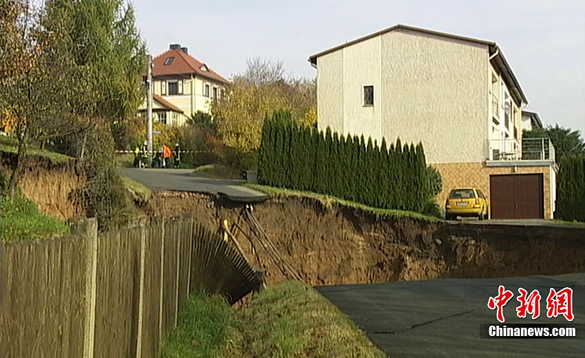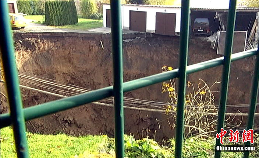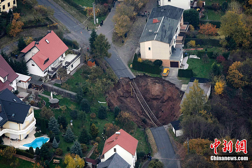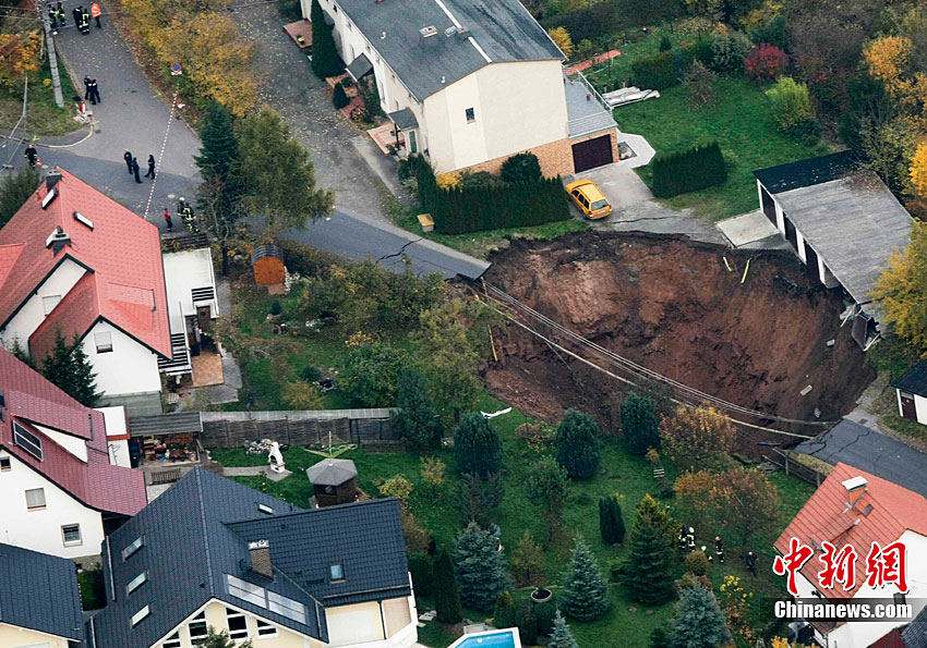 德国东部城镇发生地面塌陷
