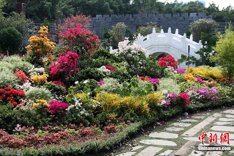 台北花博开幕在即,封园作最后调整。包括一些此前试运营期间尚未揭开“神秘盖头”的参展庭园,也已纷纷打扮齐整,静候开园迎客。图为坐落于花博圆山公园区、以“海韵”为经典意象的上海展园内,已是百花盛开,美不胜收。中新社记者 王健 摄