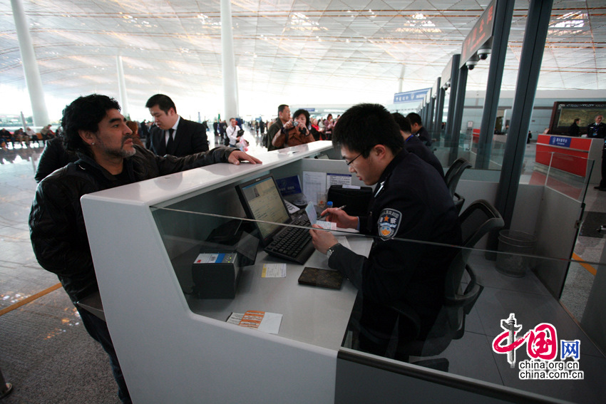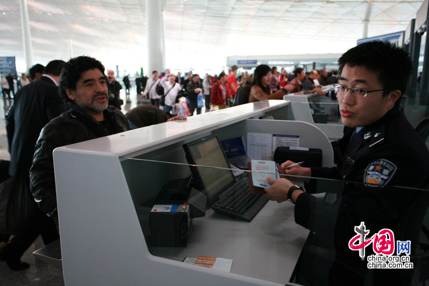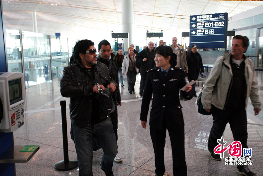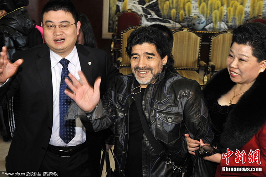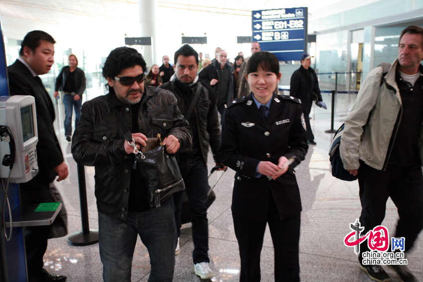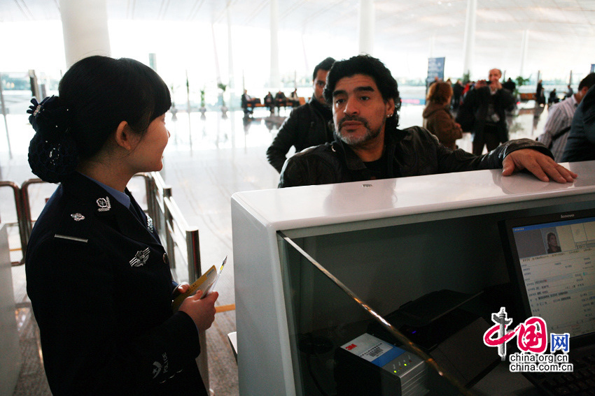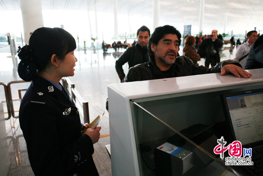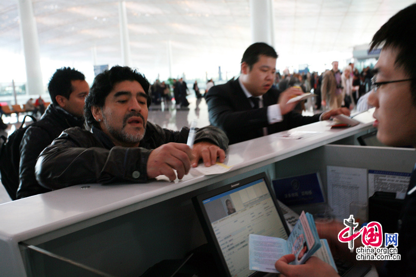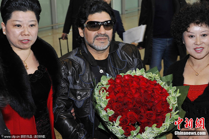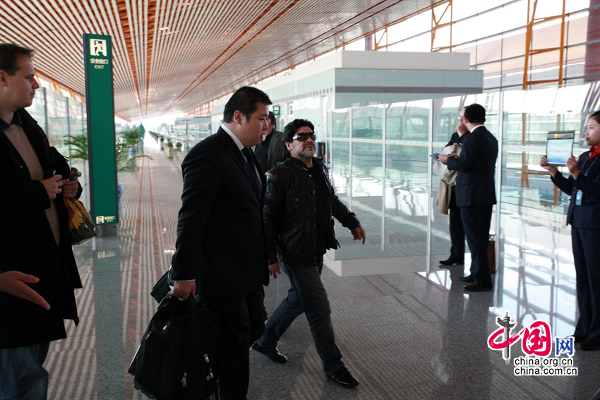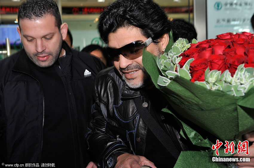 11月3日,北京首都机场,“球王”马拉多纳抵达,即将开展慈善之旅。老马在接受记者采访时表示,没有意向执教中国的某支足球队,若要执教开价会很高。他还表示,自己已经一年多没有休假了,一直在为国家的足球事业效力。图片来源:CFP视觉中国