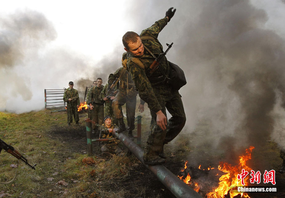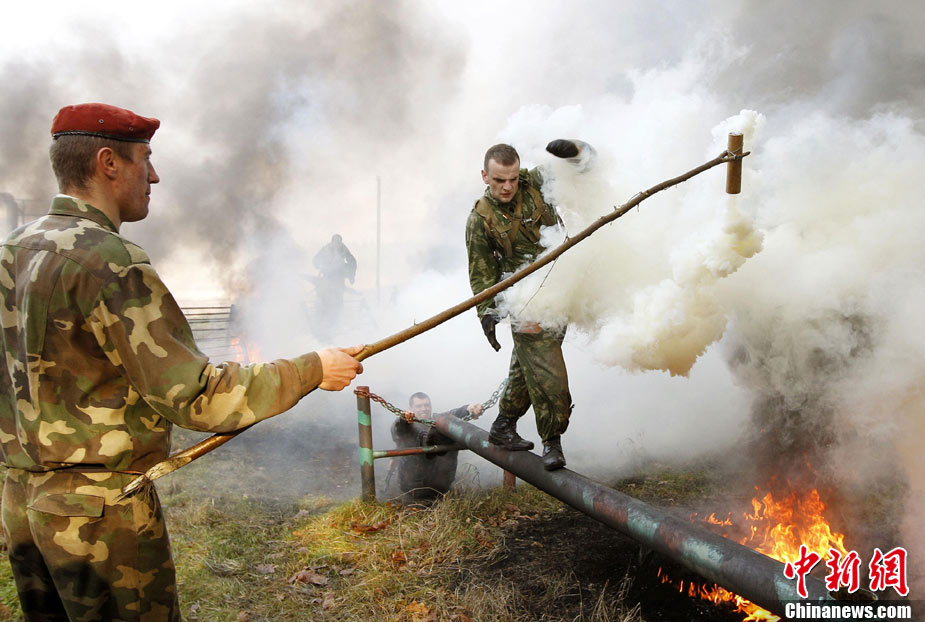 11月3日,白俄罗斯特种部队士兵参加争取佩戴“红色贝雷帽”的资格考试。