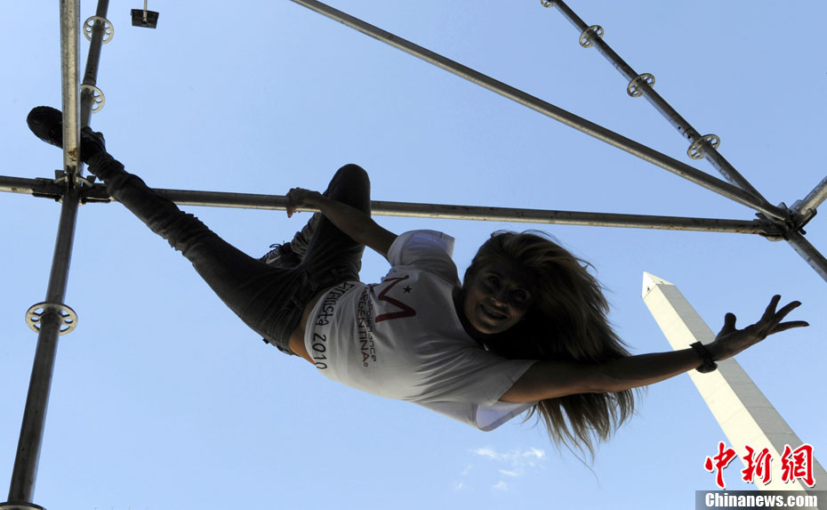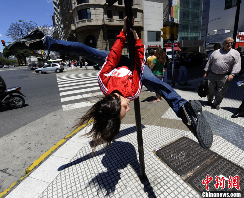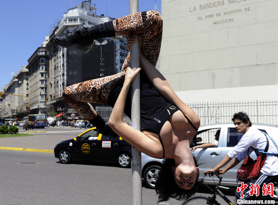 阿根廷街头上演火辣钢管舞