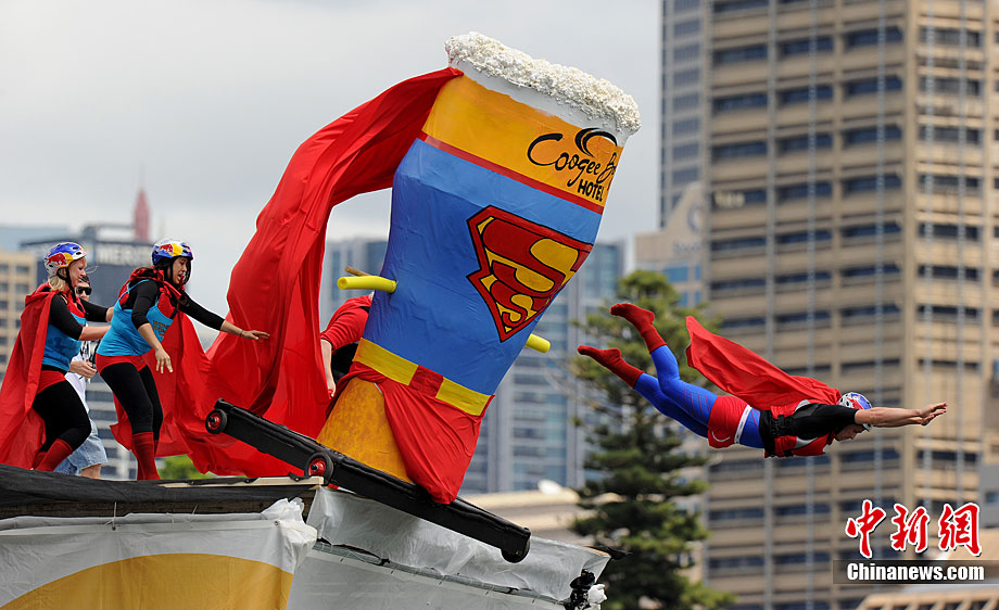 11月7日,在澳大利亚悉尼举行了搞笑的红牛杯“鸟人”大赛。据报道,这项赛事1991年起源于奥地利维也纳,参赛选手自制人力飞行器从高台起飞并最终跃入水中,飞行距离最远者获胜。