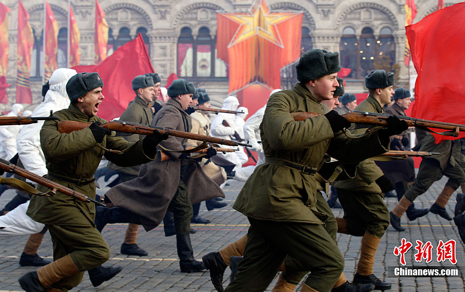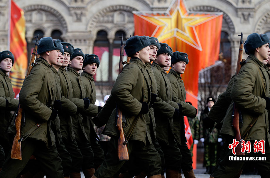 当地时间11月7日,俄罗斯首都莫斯科红场举行了盛大阅兵仪式,纪念1941年11月7日的红场阅兵69周年。