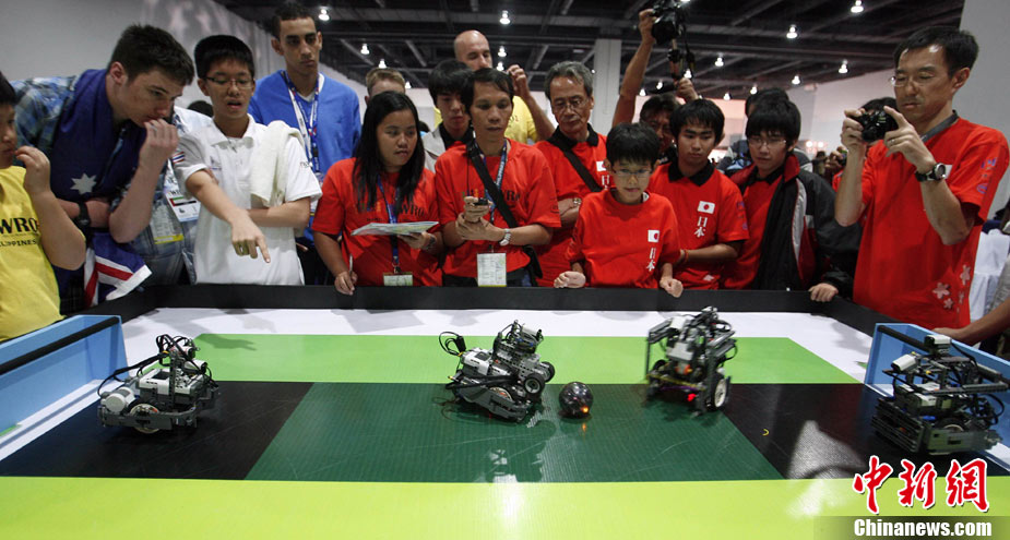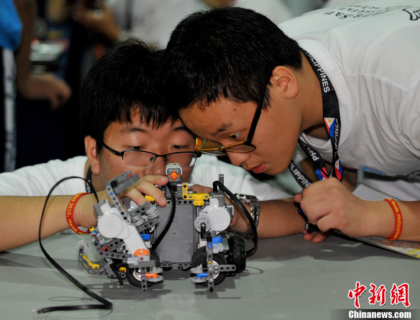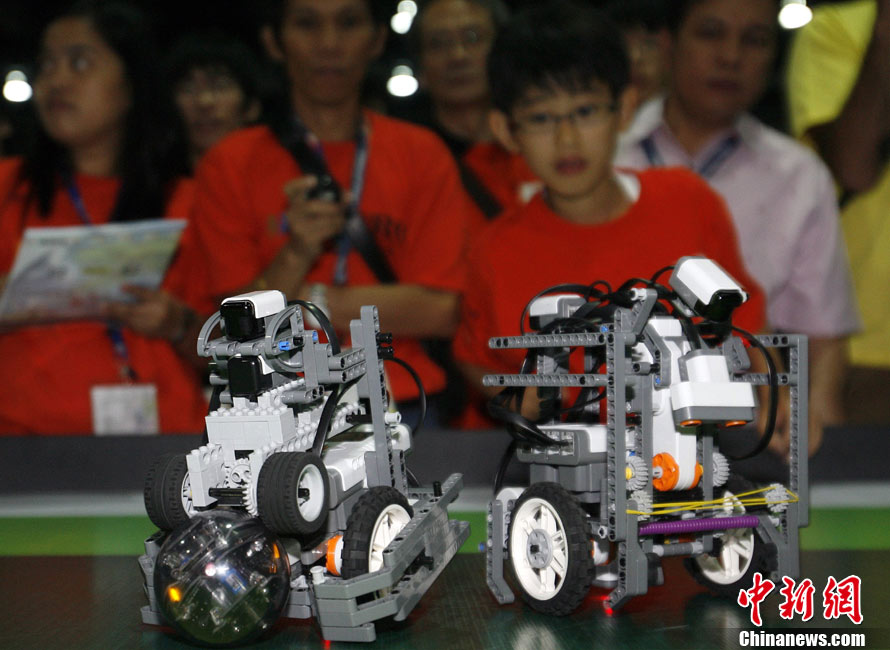 第七届世界机器人奥林匹克竞赛总决赛6日上午在菲律宾首都马尼拉举行。来自中国、埃及、德国、日本、墨西哥、俄罗斯、南非等30多个国家和地区的近千名青少年选手参赛,凭借智慧和动手能力展开角逐。