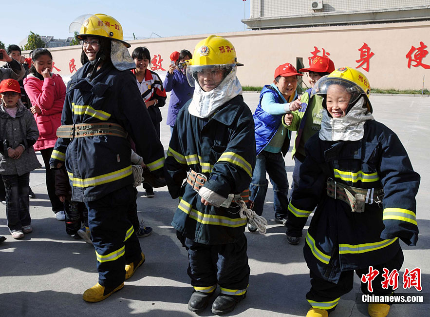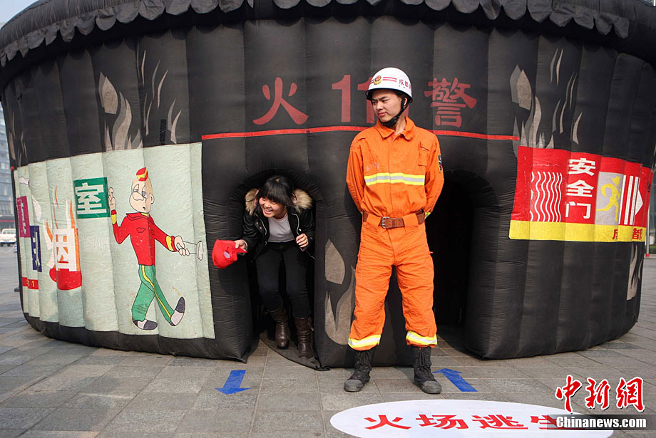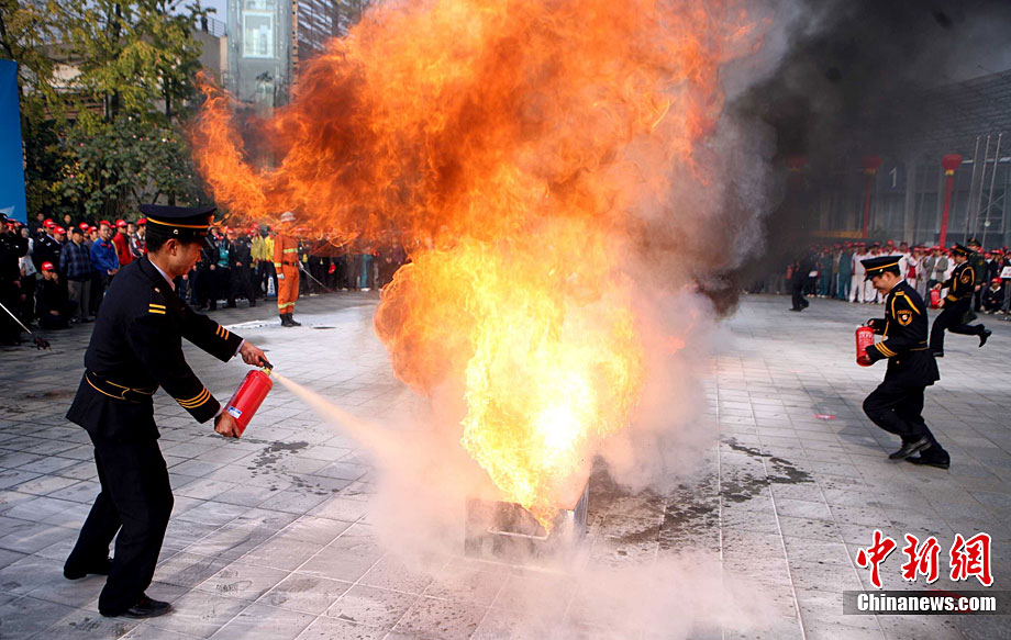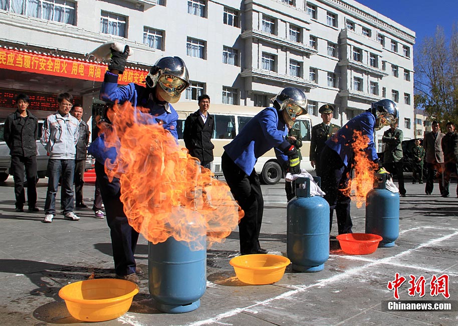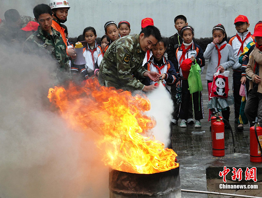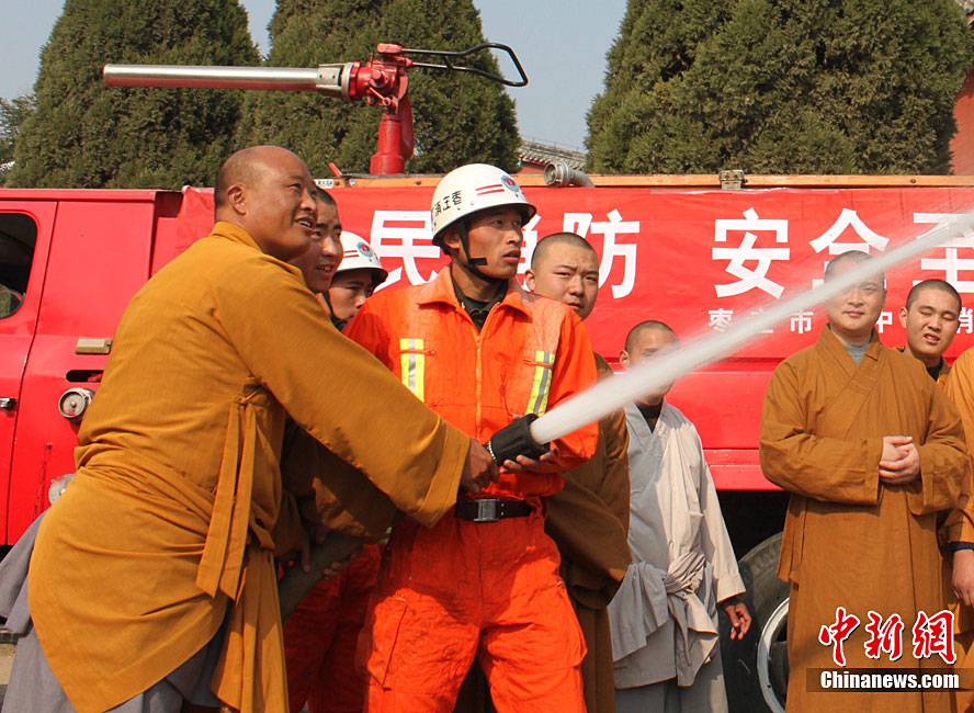 在第20个“11.9”全国消防日前夕,11月7日,山东省枣庄市公安消防部门针对寺庙用火、用电增多,火灾风险不断增大的实际情况,在辖区开展了消防“进寺庙”宣传活动,让寺庙的僧众掌握基本消防知识,提高消防意识。今年全国“消防日”宣传活动的主题是“全民关注消防·生命安全至上”。季龙 摄 图片来源:CNSPHOTO