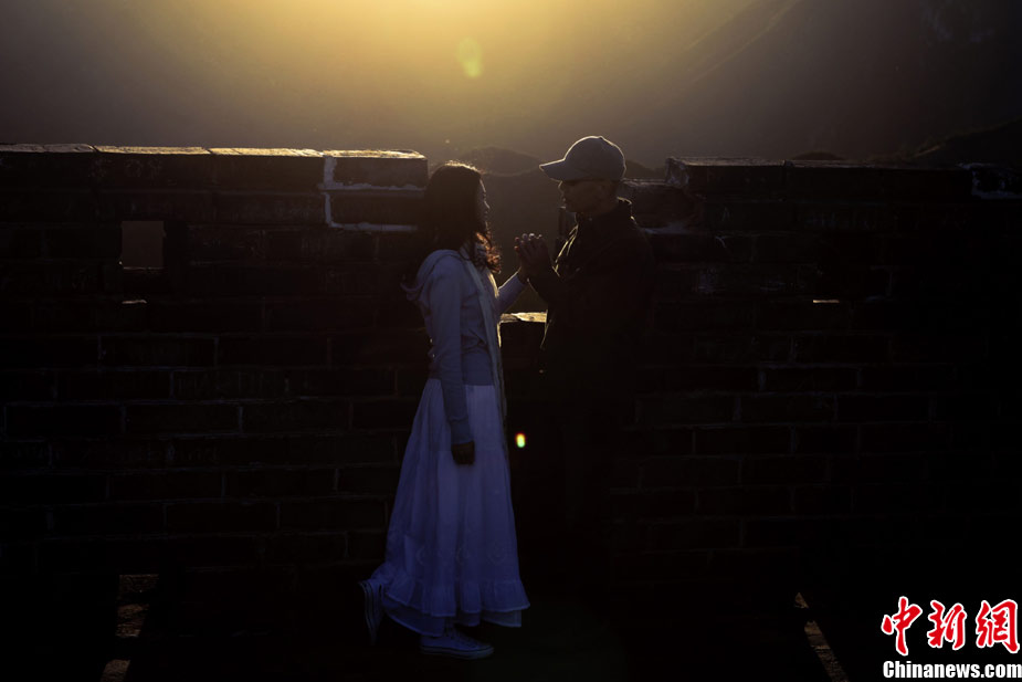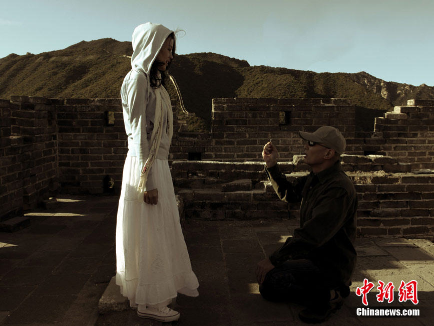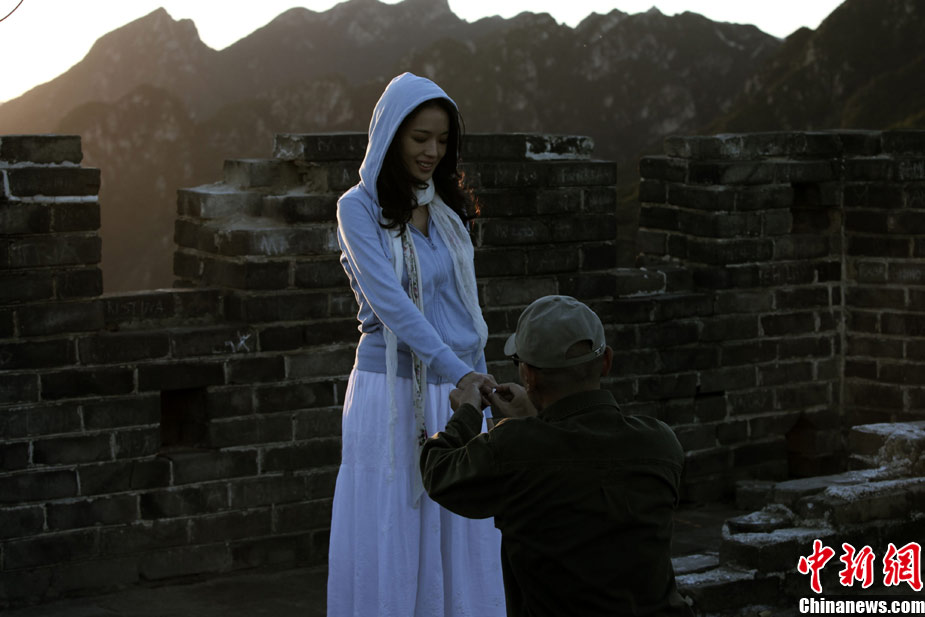 由华谊兄弟出品,冯小刚导演,王朔、冯小刚联合编剧的《非诚勿扰2》将于12月22日上映。冯氏贺岁电影时隔两年卷土重来,幽默情调不变,浪漫情怀升温。近日,华谊兄弟发布了秦奋向梁笑笑求婚的剧照。长城上夕阳下,葛优单膝跪地手举钻戒,舒淇笑脸相迎,在《非诚勿扰2》中上演了一场最浪漫的求婚。据悉,为了完成这场求婚戏,全剧组连续拍摄两天才达到冯小刚导演的要求。 中新社发 fcwr 摄