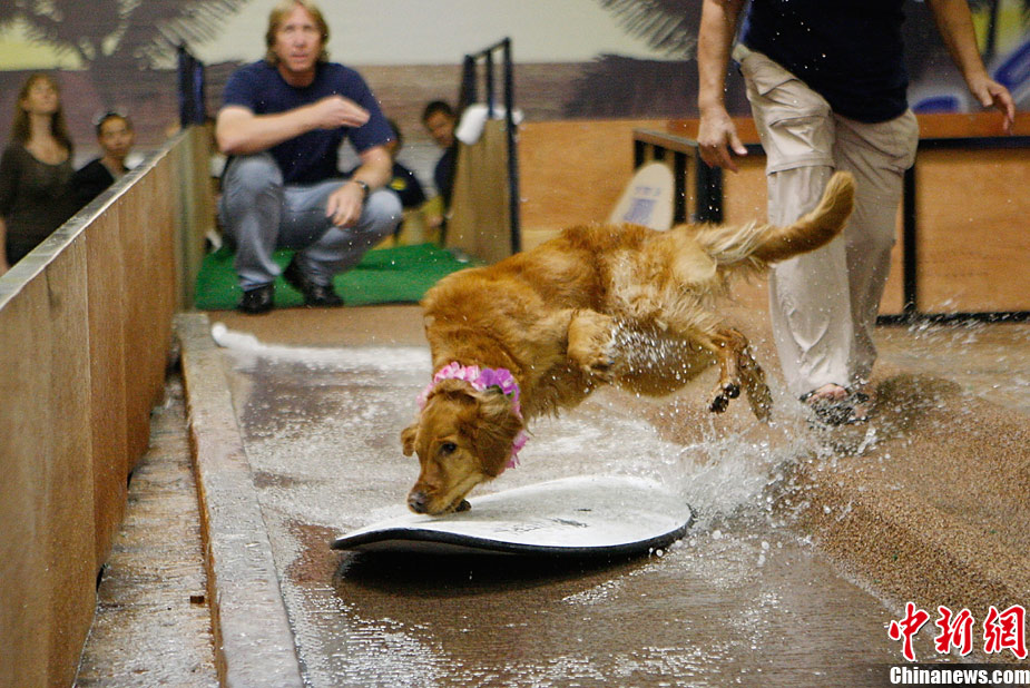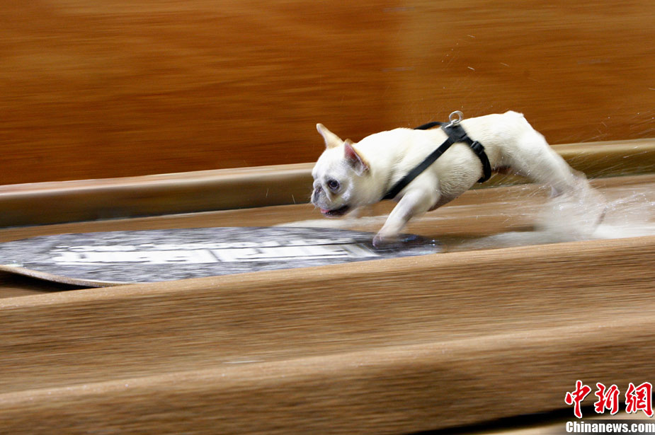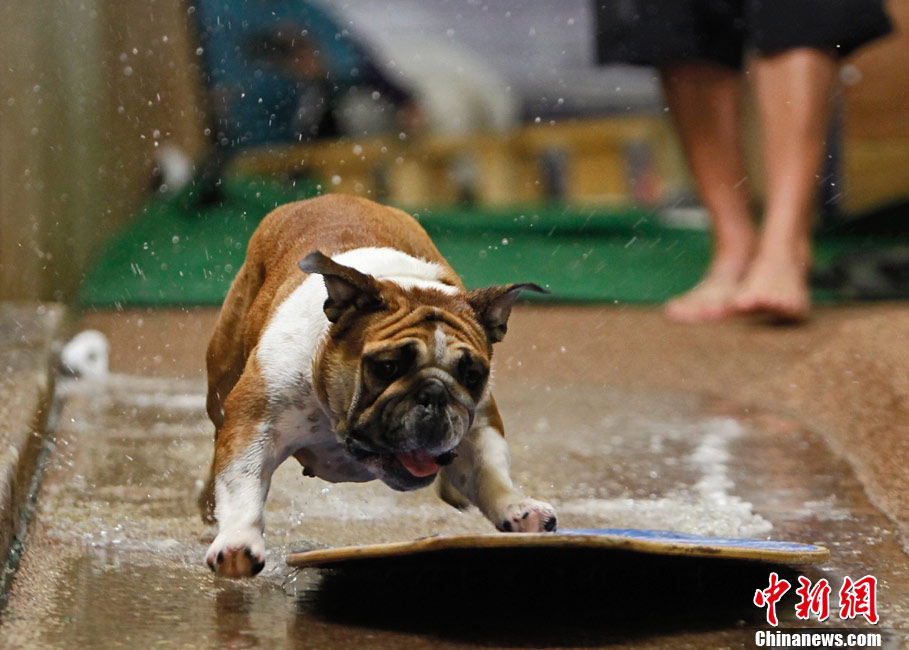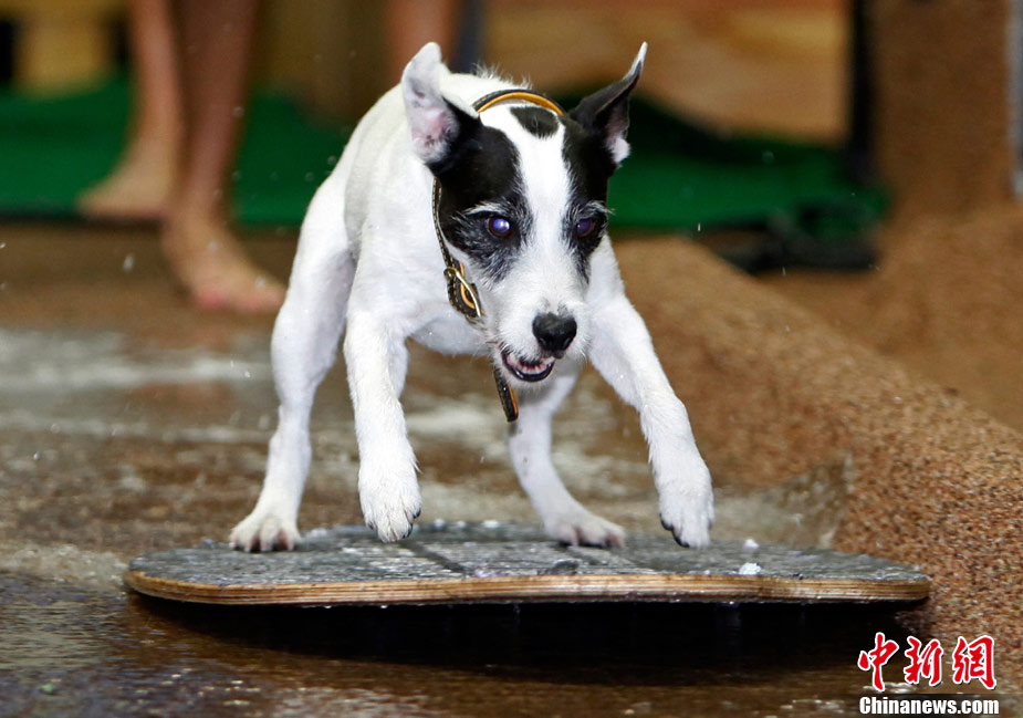 11月8日,在美国洛杉矶举行了一场别开生面的狗狗滑水大赛,参赛的可爱狗狗们在“赛道”上展现滑水“绝技”。
