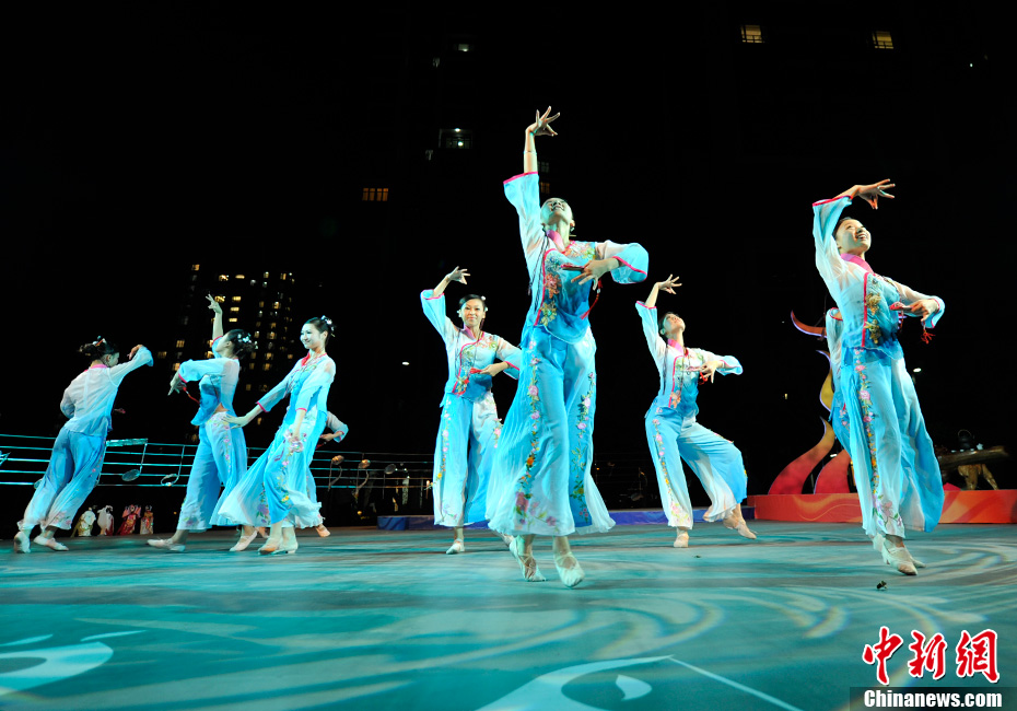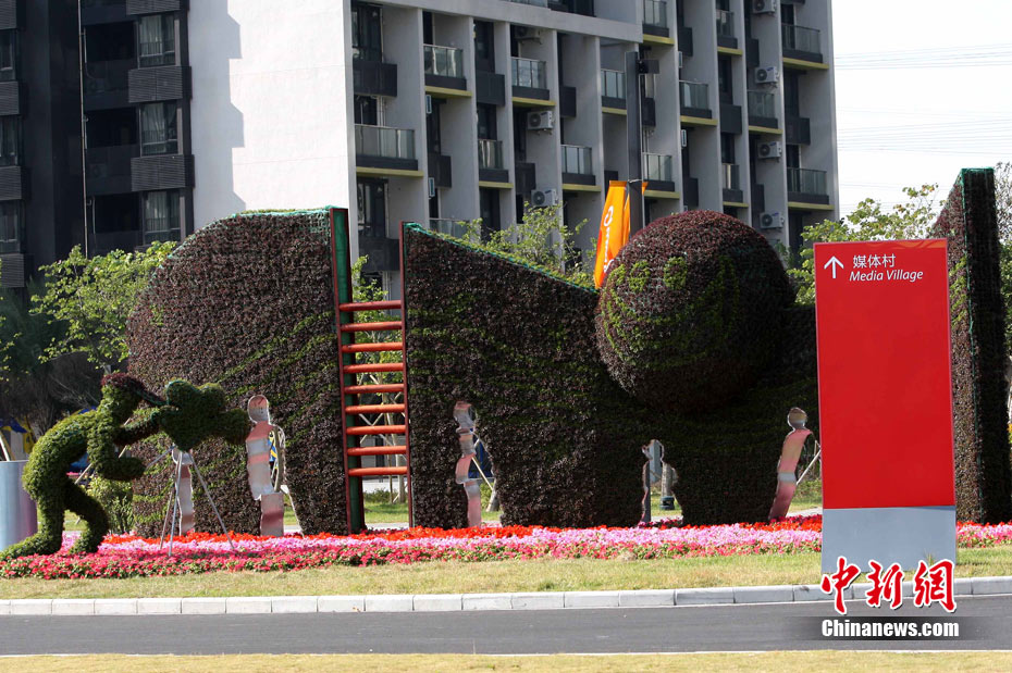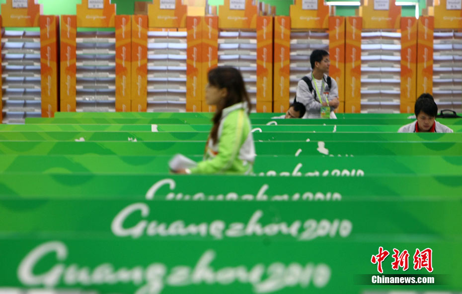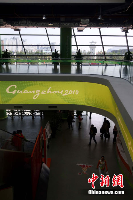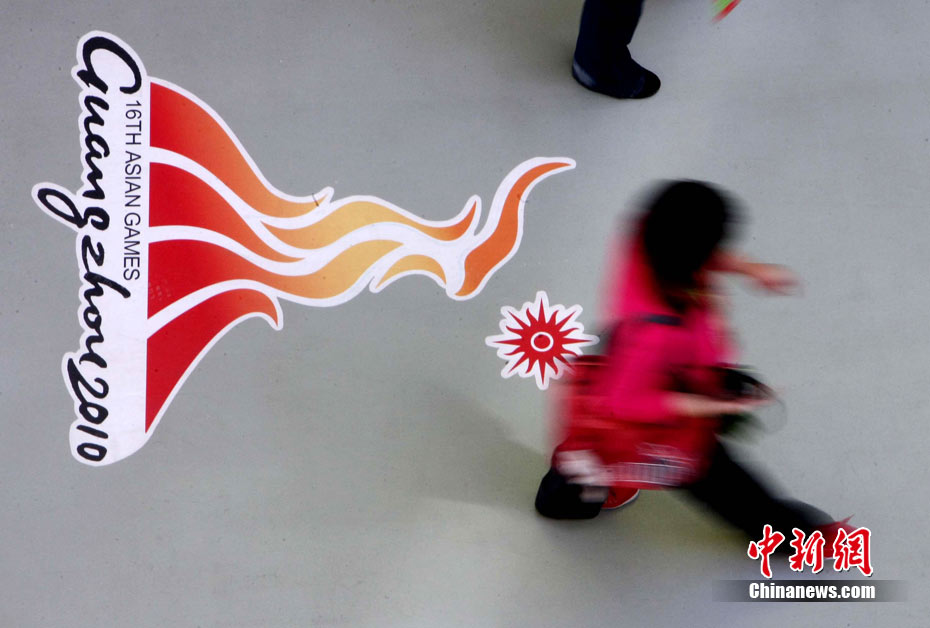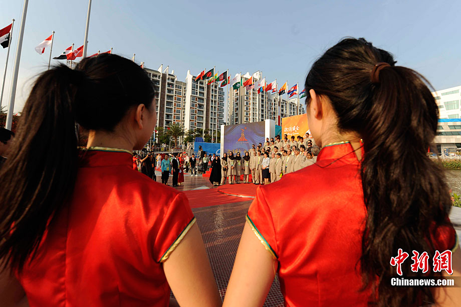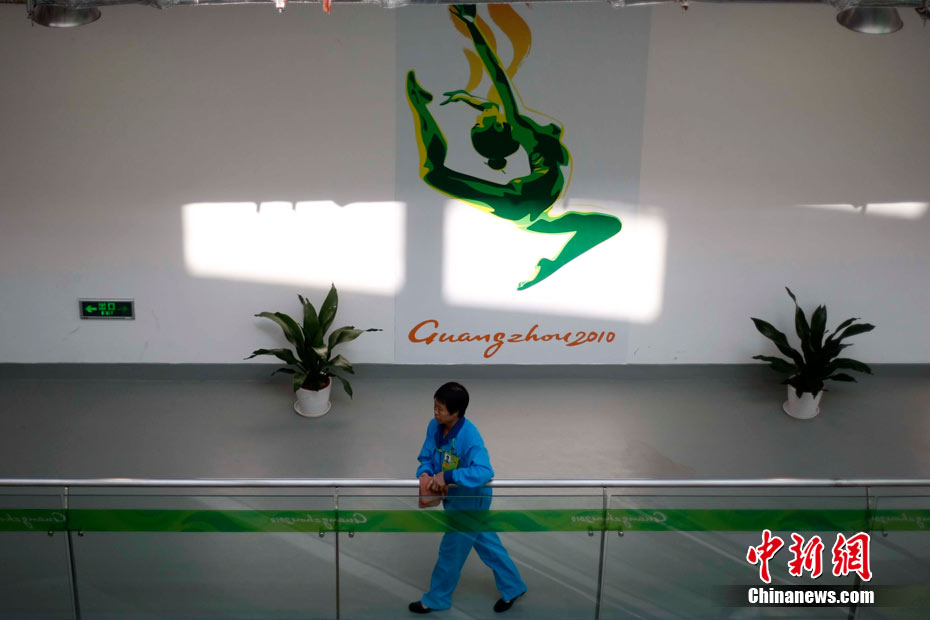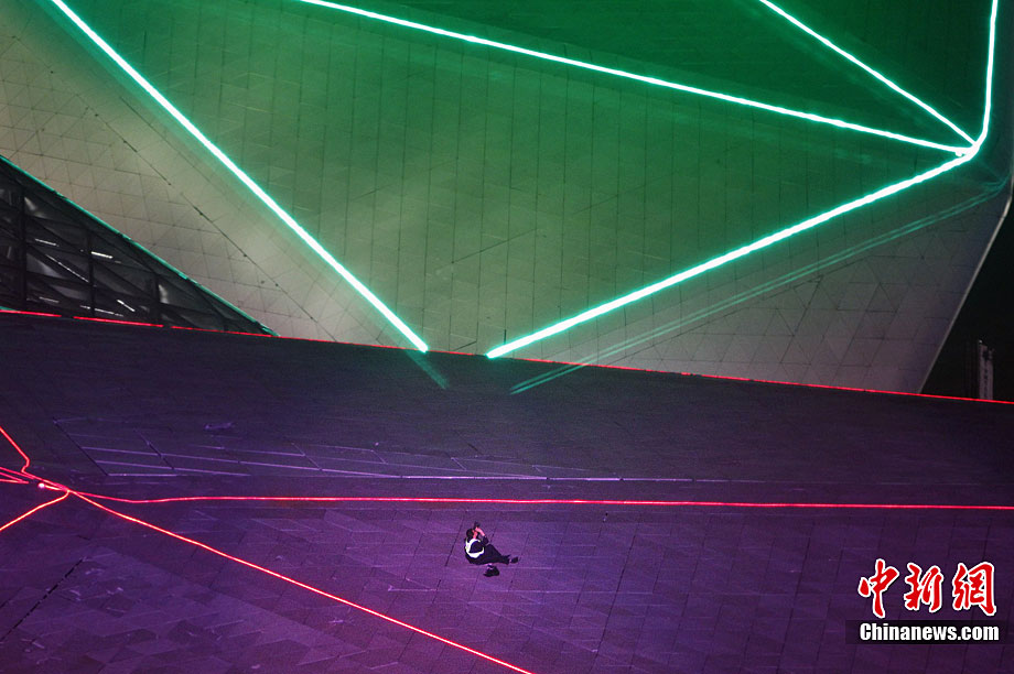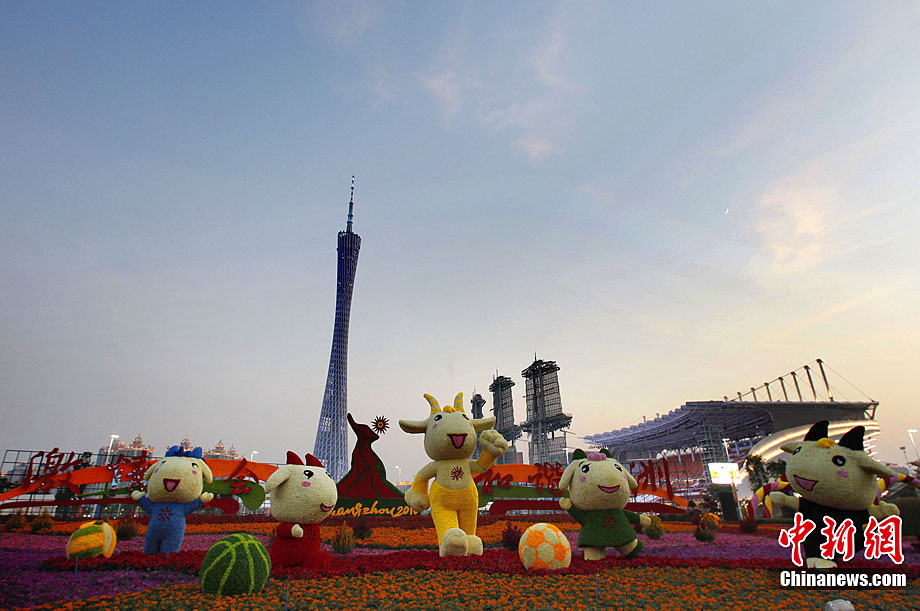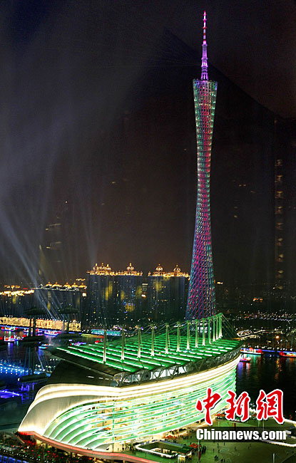 11月9日晚,广州亚运会举行开闭幕式的海心沙岛五彩缤纷,开幕式彩排紧张地进行。中新社记者 任晨鸣 摄
