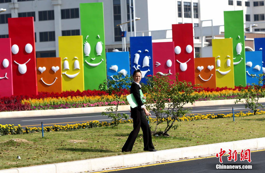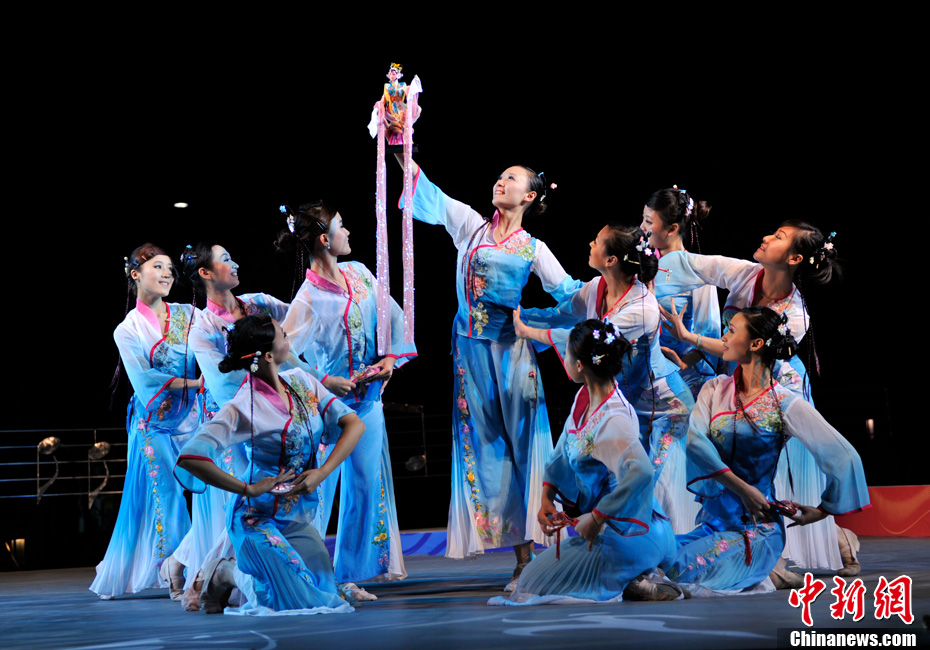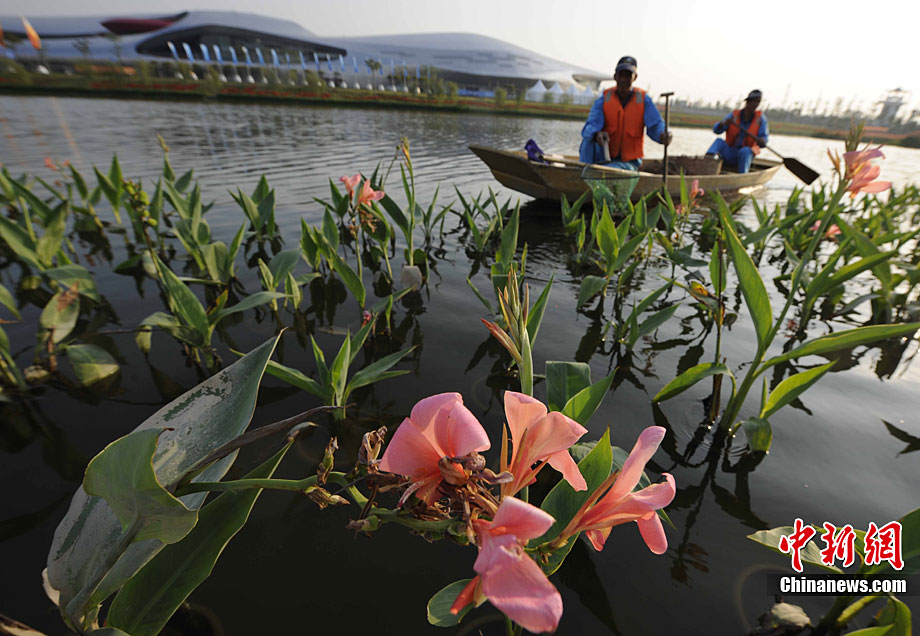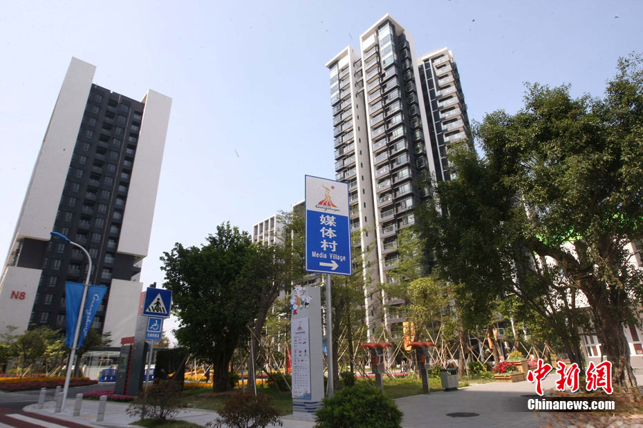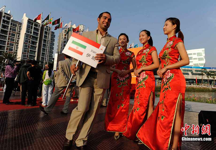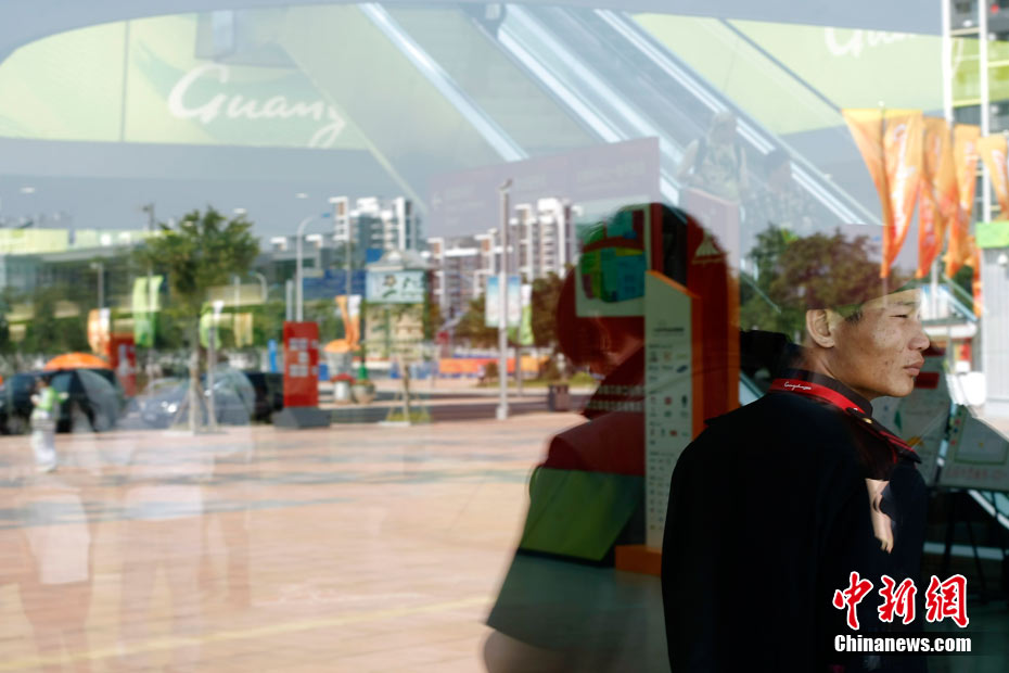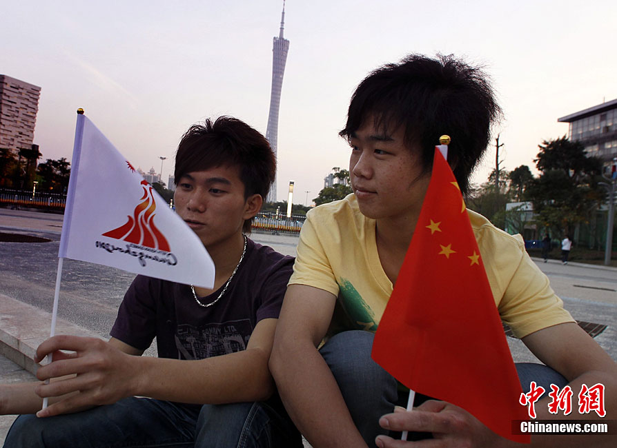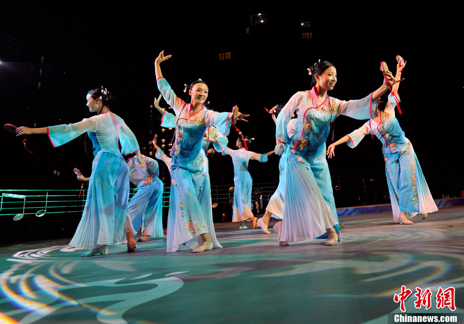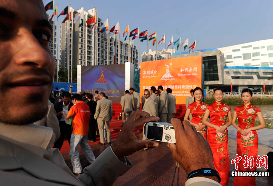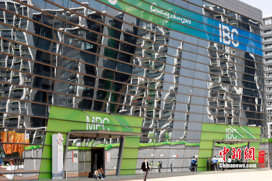 11月9日晚,广州亚运会举行开闭幕式的海心沙岛五彩缤纷,开幕式彩排紧张地进行。中新社记者 任晨鸣 摄