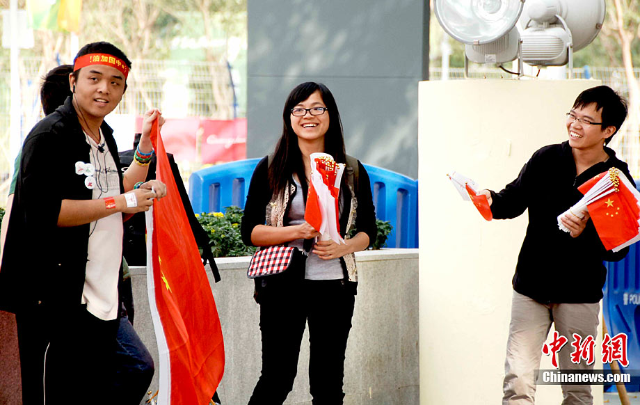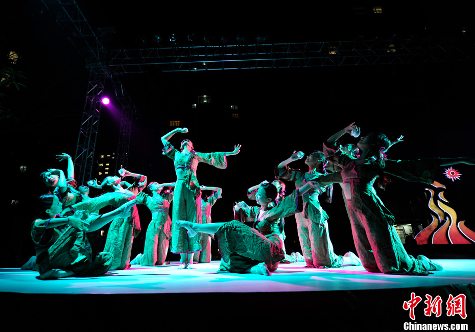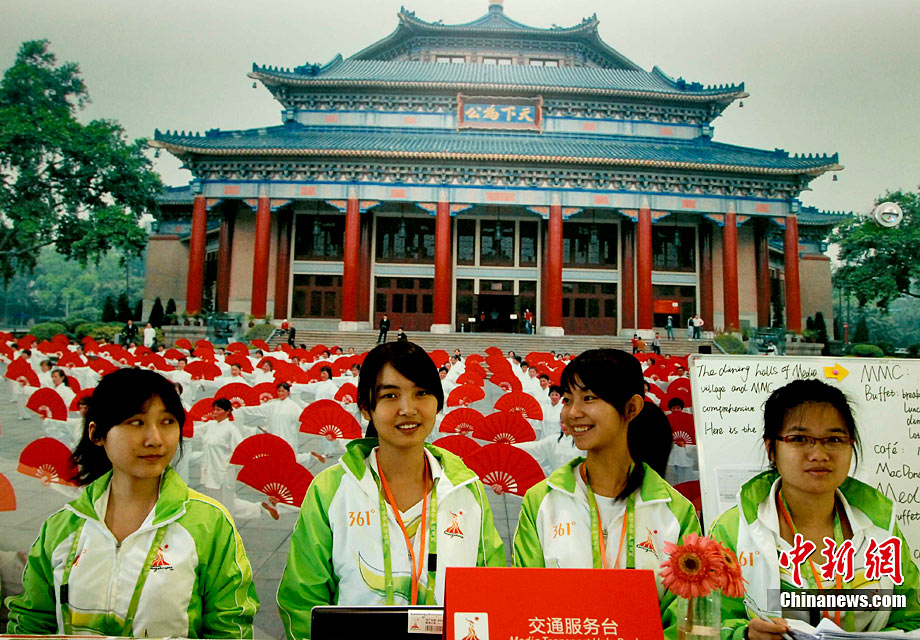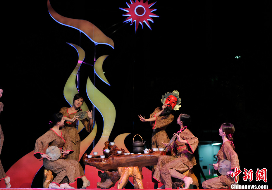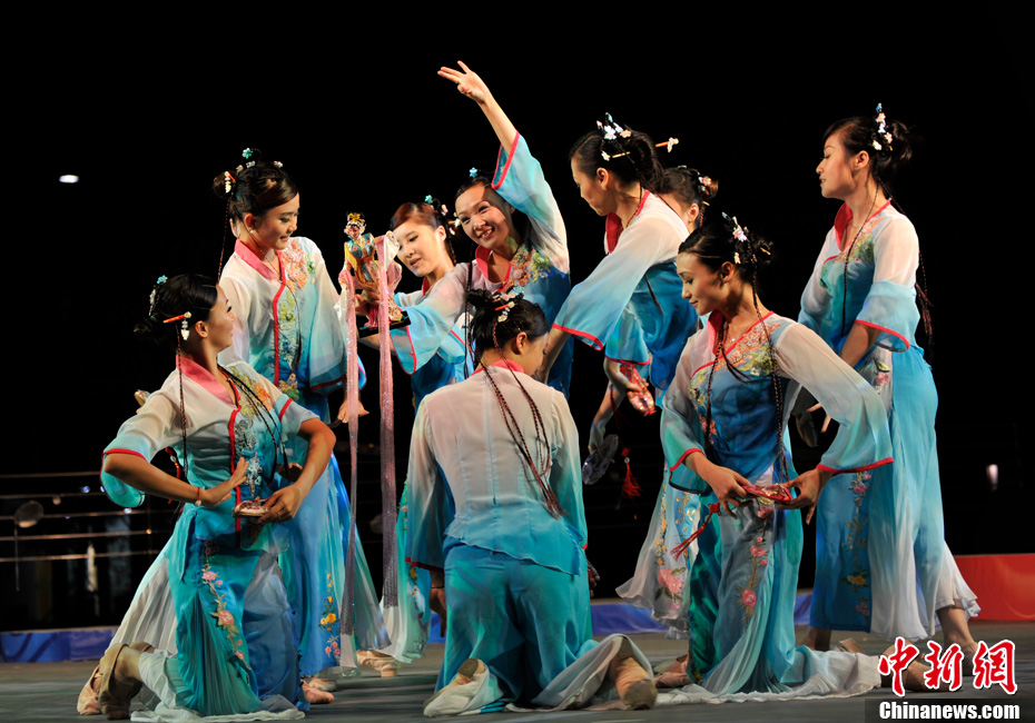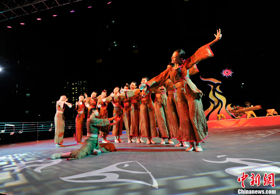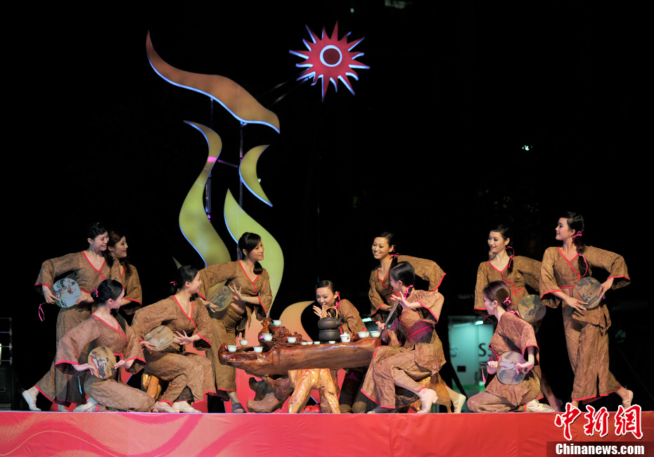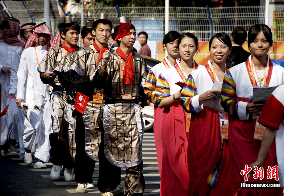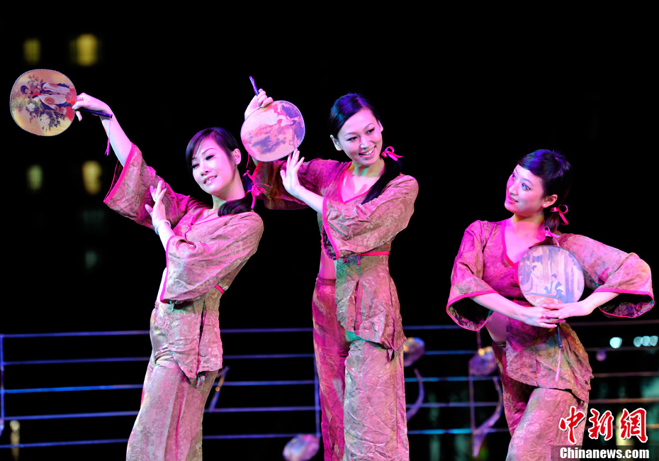 11月9日晚,广州亚运会举行开闭幕式的海心沙岛五彩缤纷,开幕式彩排紧张地进行。中新社记者 任晨鸣 摄
