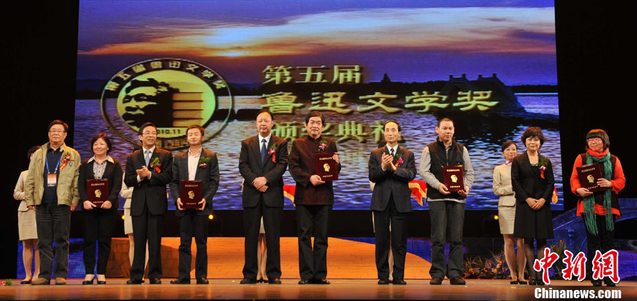 11月9日晚,第五届鲁迅文学奖颁奖典礼在鲁迅故乡浙江绍兴举行。30位鲁迅文学奖得主分别获得报告文学、散文杂文、诗歌、评论、中篇小说、短篇小说等类别的奖项。武汉市纪委书记车延高的诗集《向往温暖》摘得鲁迅文学奖诗歌奖项。袁云 摄