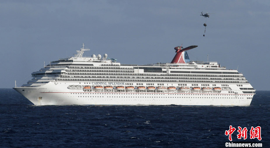 11月9日,“光辉嘉年华”号游轮停泊在墨西哥圣迭戈西南附近海域。 8日,这艘游轮机舱起火在墨西哥西部海域搁浅,近4500名乘客和船员受困。美国海军“罗纳德·里根”号已在事发海域协助救援。