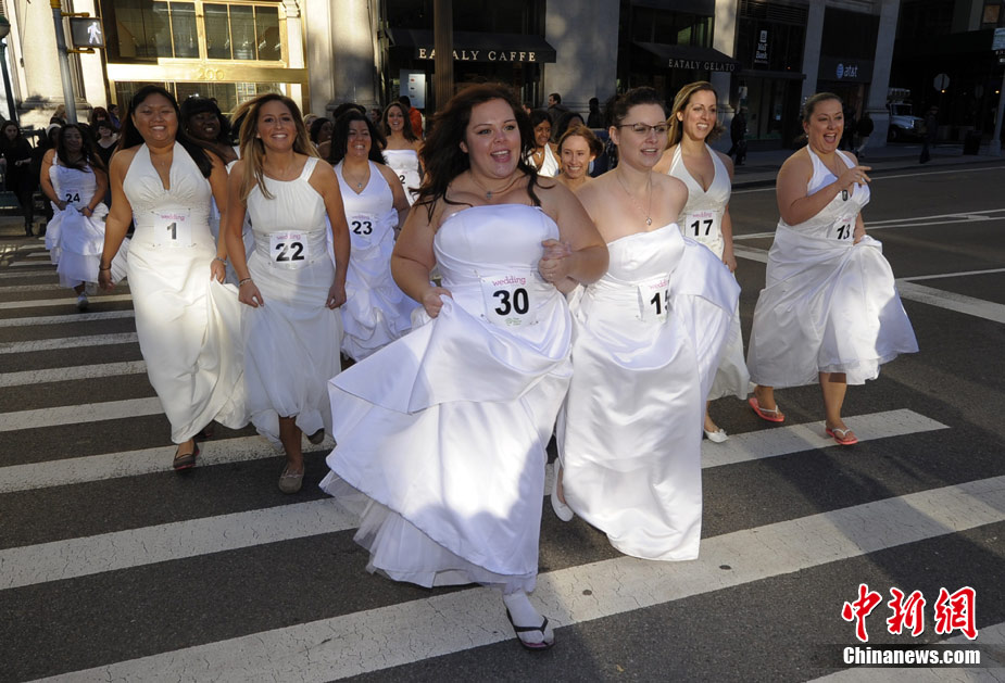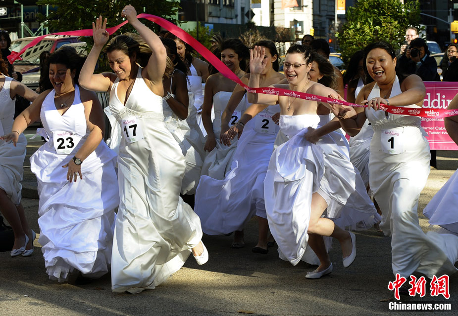 数十新娘纽约街头疯狂抢穿高跟鞋
