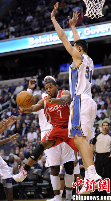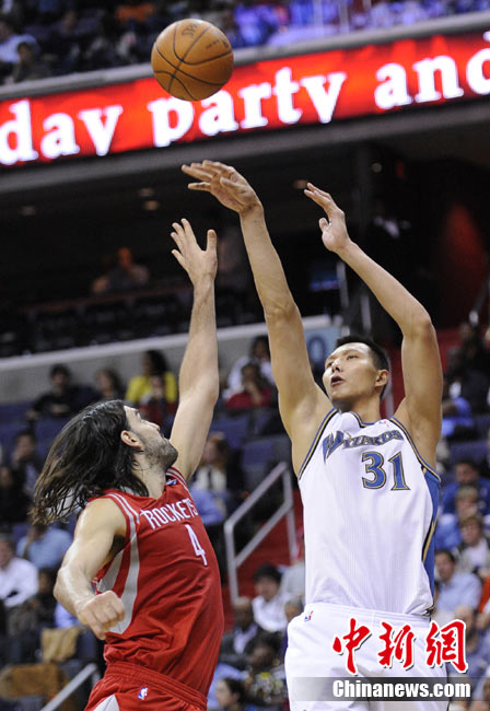 北京时间11日,NBA“中国德比”在华盛顿打响。姚明所在的火箭客场以91-98不敌易建联效力的奇才。姚明和易建联两人并没在场上面对面交手。姚明只打了6分钟就受伤遗憾提前离场。易建联此后替补上场,两人失之交臂。此役阿联表现抢眼,全场盖帽4次,还贡献了13分,抢下7个篮板。