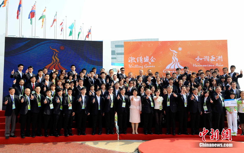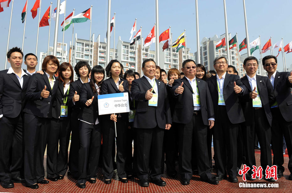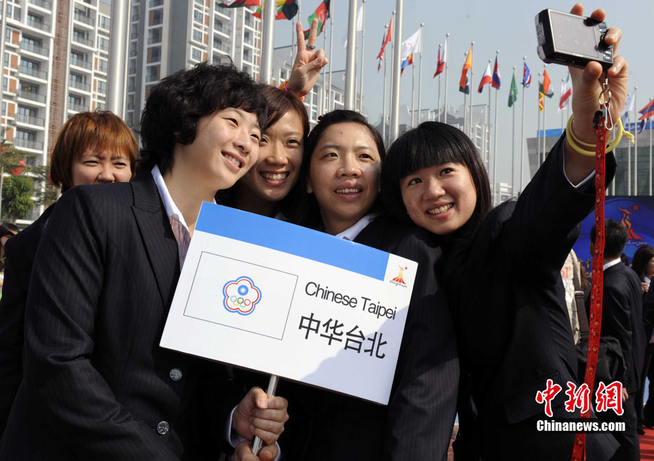 11月11日,中华台北代表团举行广州亚运会亚运村升旗仪式。中新社记者 王东明 摄