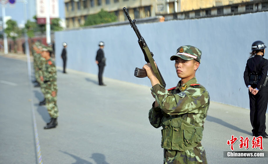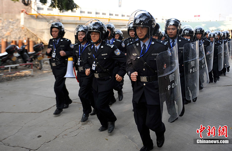 11月11日下午,为提高监狱安全防范和及时有效处置突发事件的能力,广西监狱局组织驻南宁监狱单位进行了制暴追逃预案应急处置实战演练。本次制暴追逃演练是驻南宁市监狱单位和武警、公安交警应对突发事件的首次联合大练兵。参与警力达260余人。“事发监狱”在周边监狱单位、武警官兵、公安民警的权利配合下,成功处置4名“罪犯”企图制造骚乱、趁机越狱脱逃“事件”。中新社记者 蒋雪林 摄