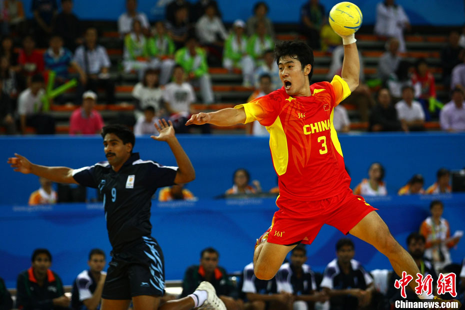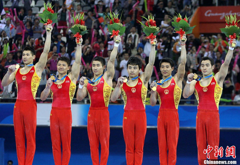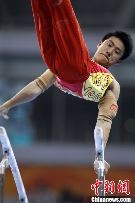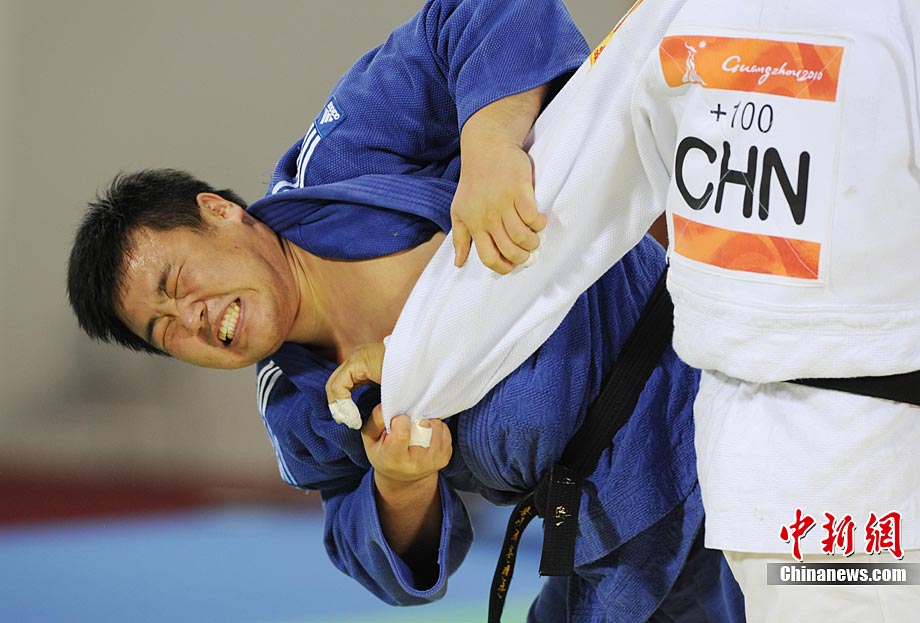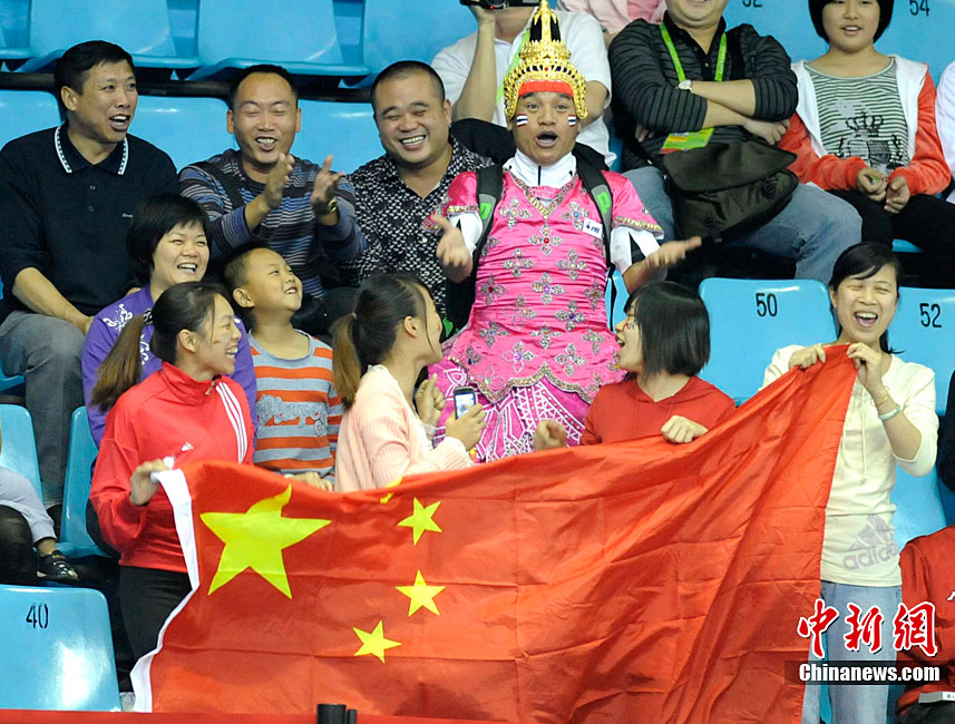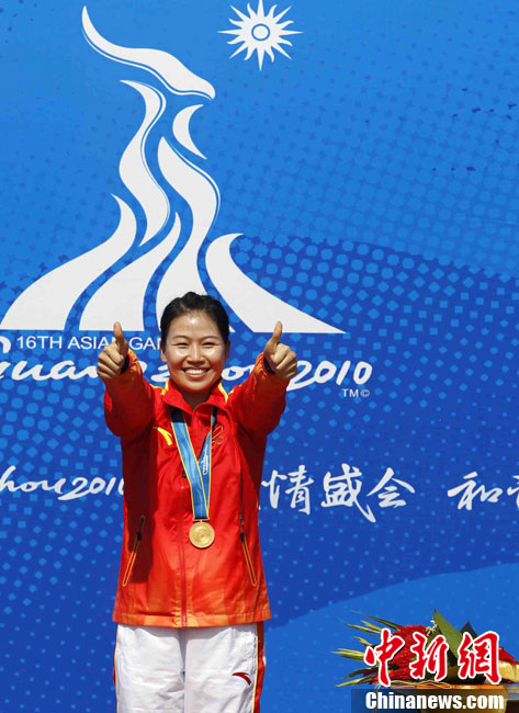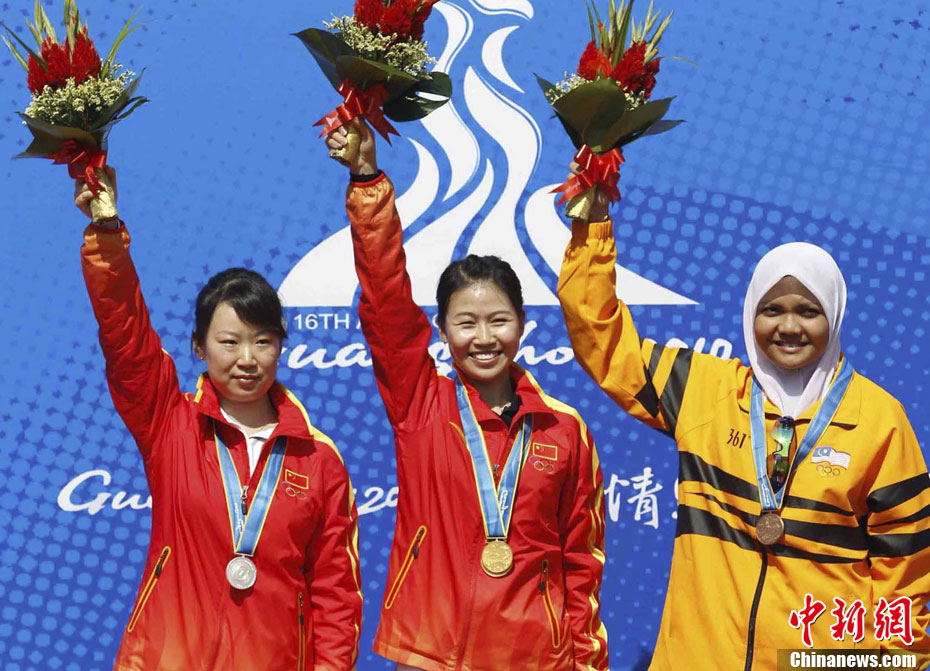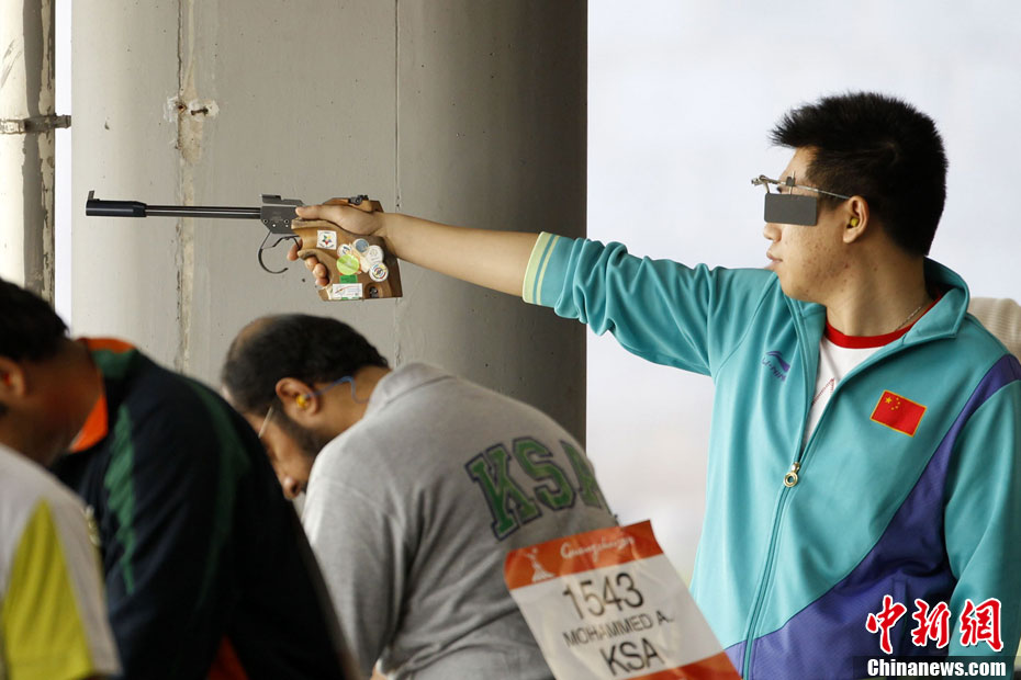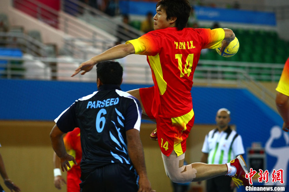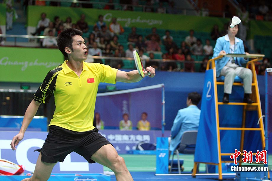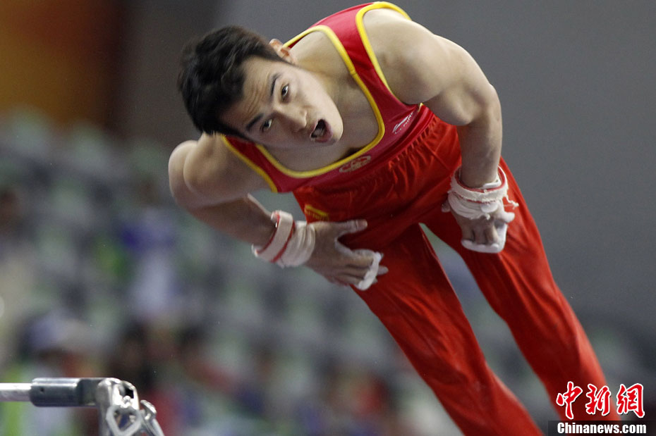 11月13日上午,中国选手袁晓超夺得男子长拳冠军,这也是本届亚运会诞生的首枚金牌。 中新社记者 柯小军 摄