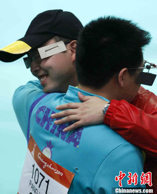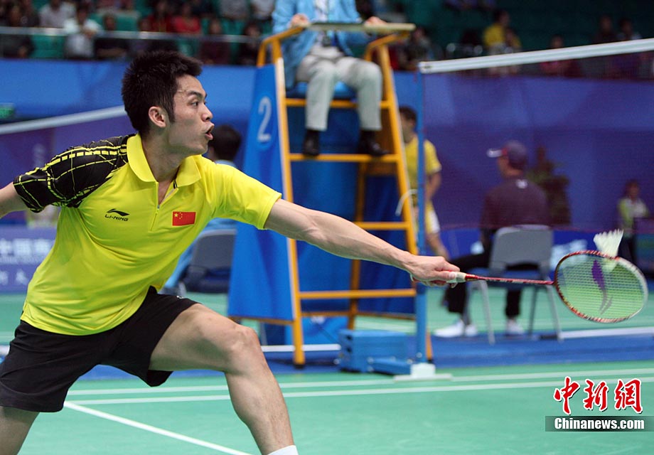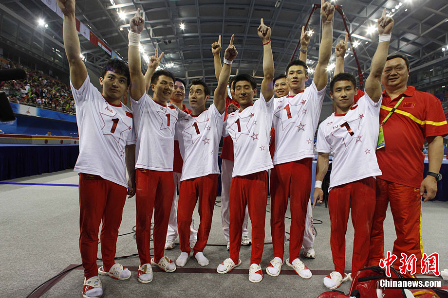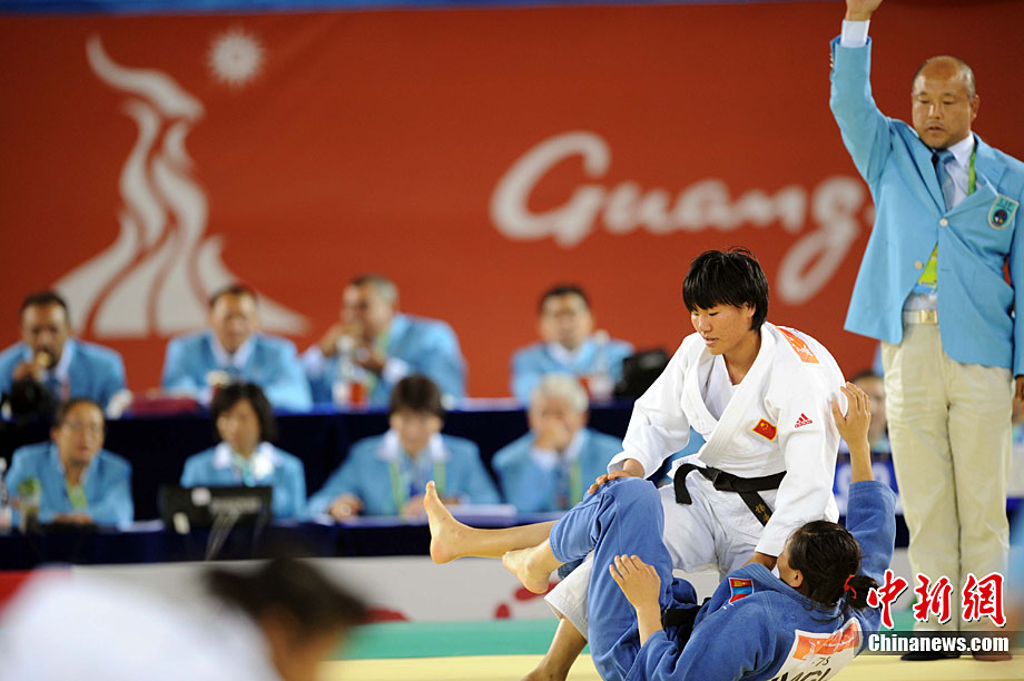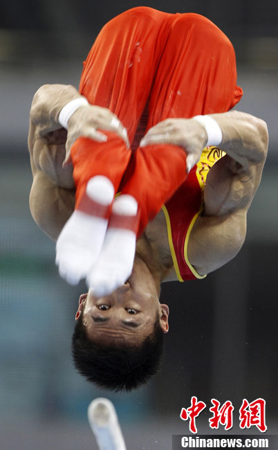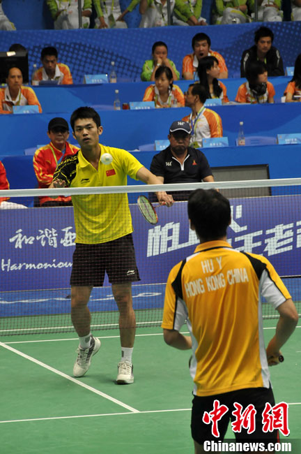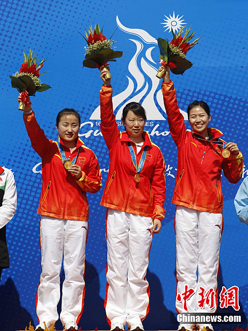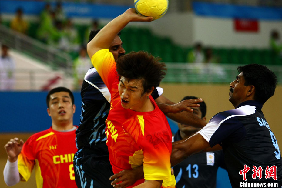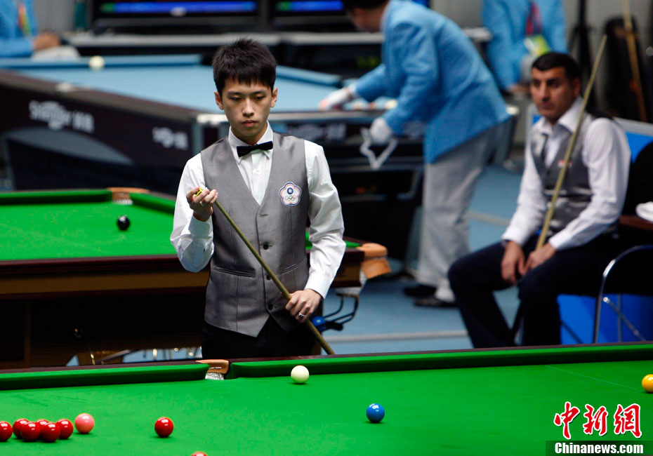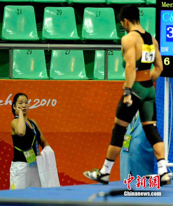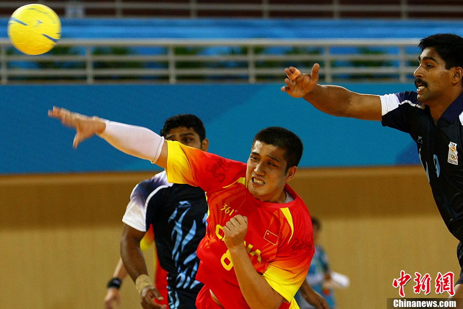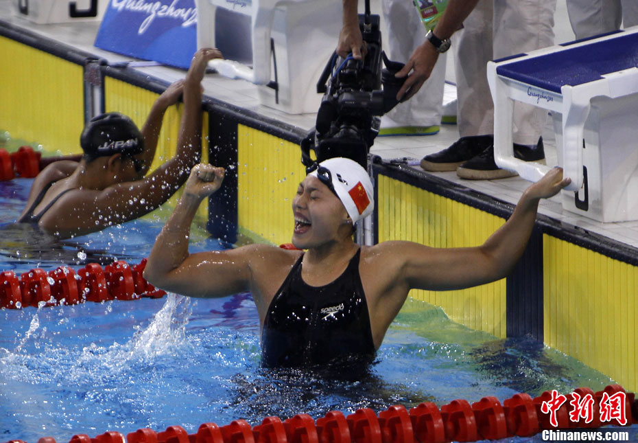 11月13日上午,中国选手袁晓超夺得男子长拳冠军,这也是本届亚运会诞生的首枚金牌。 中新社记者 柯小军 摄