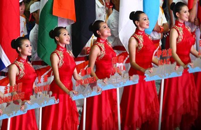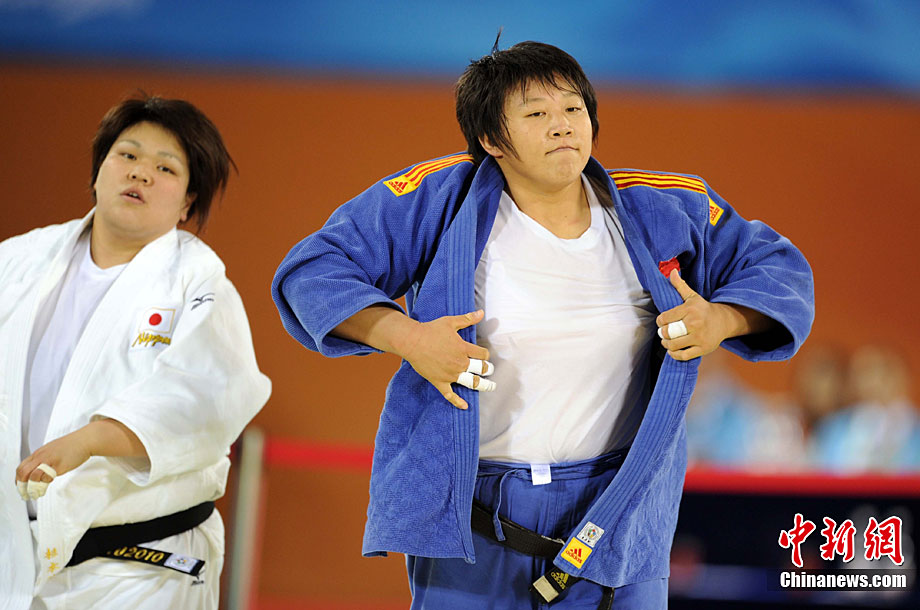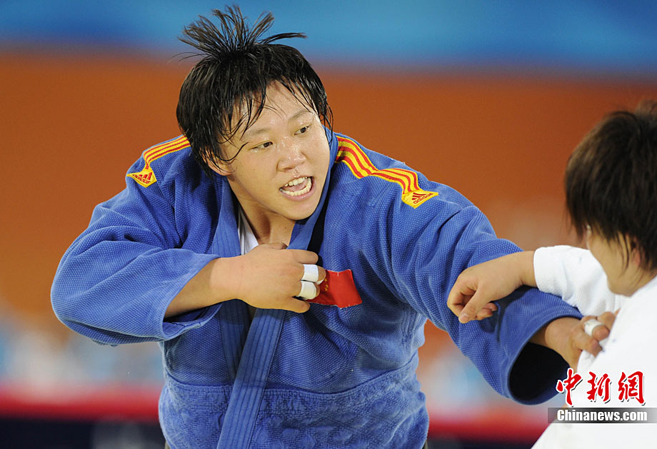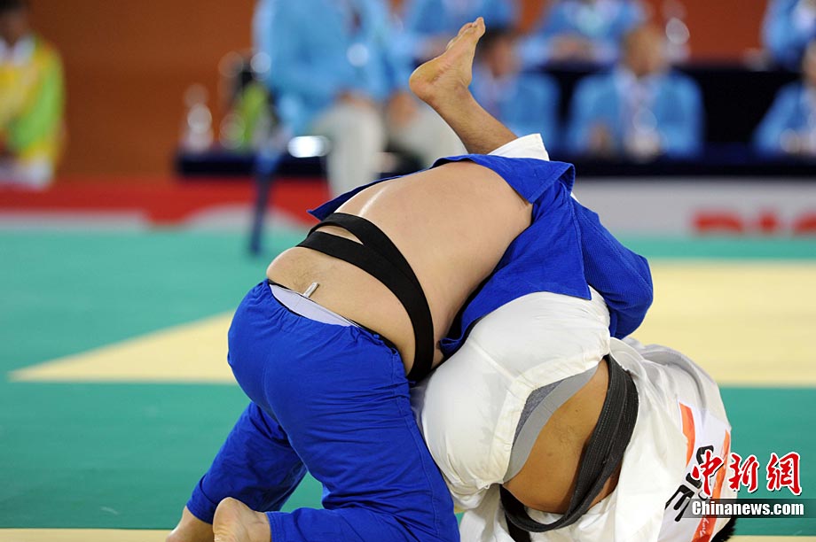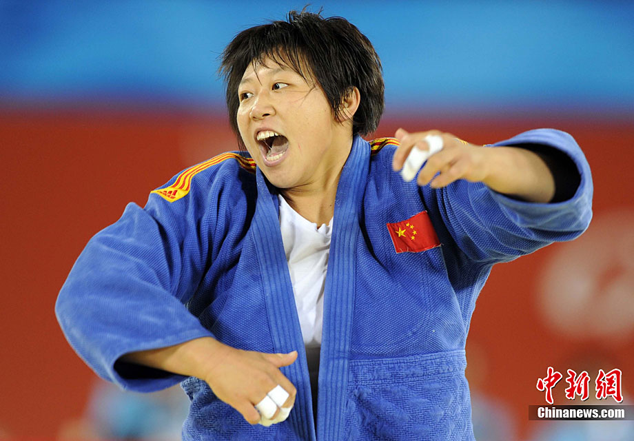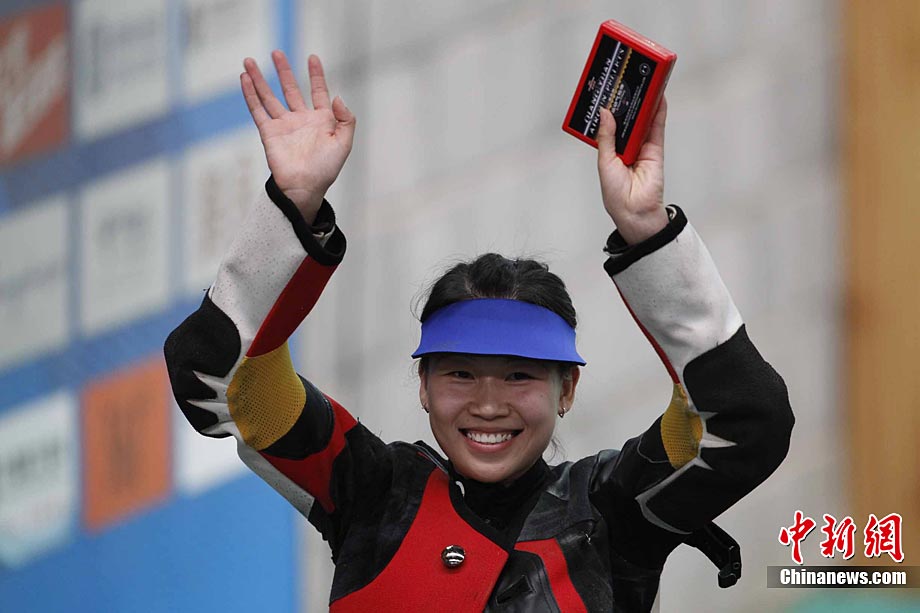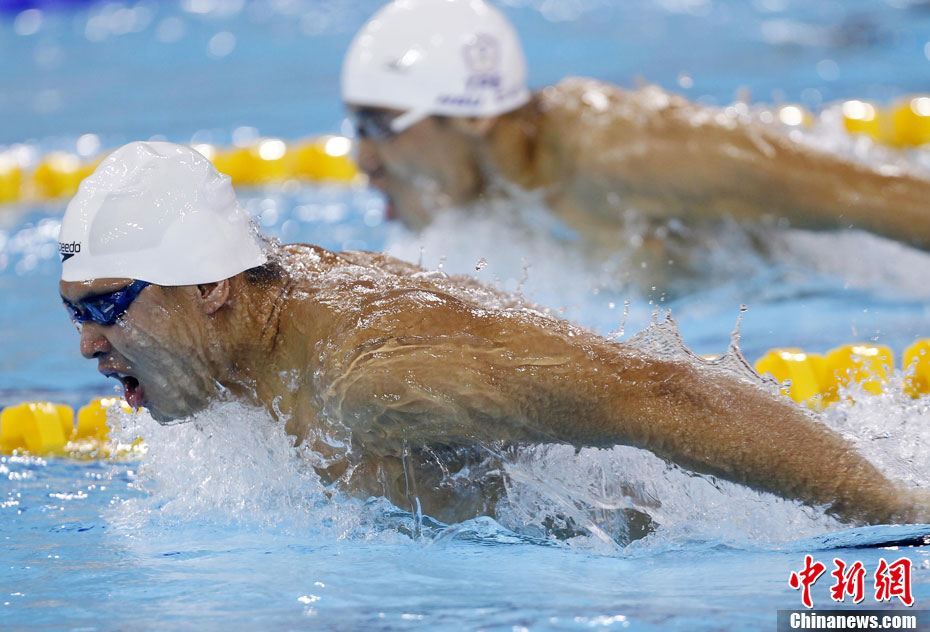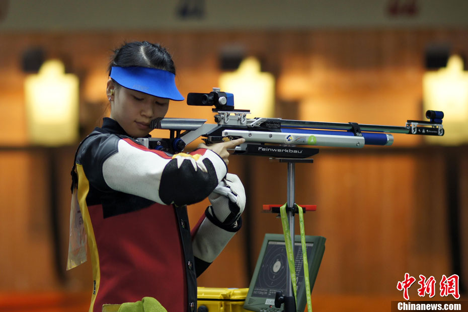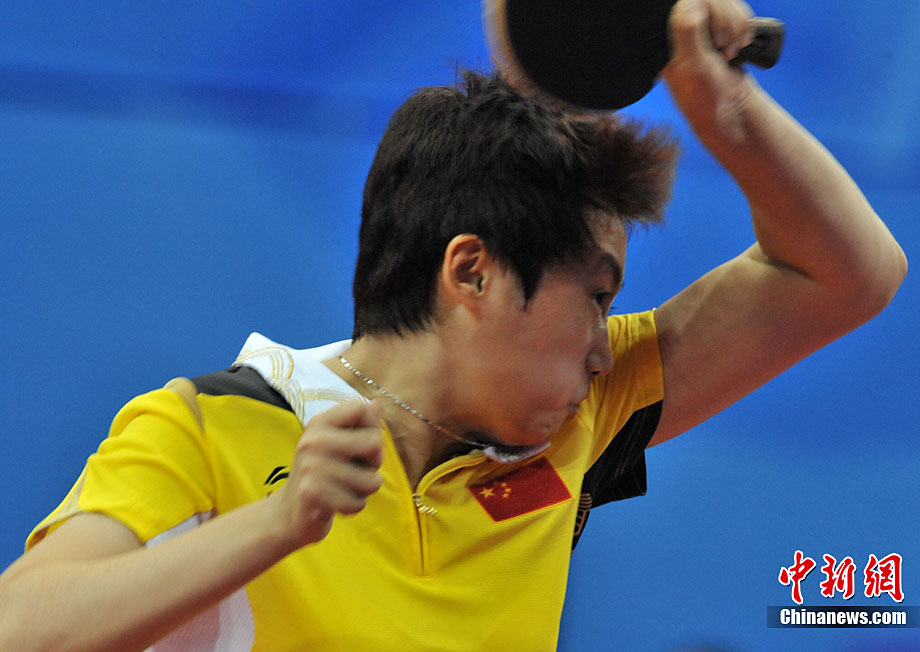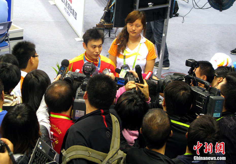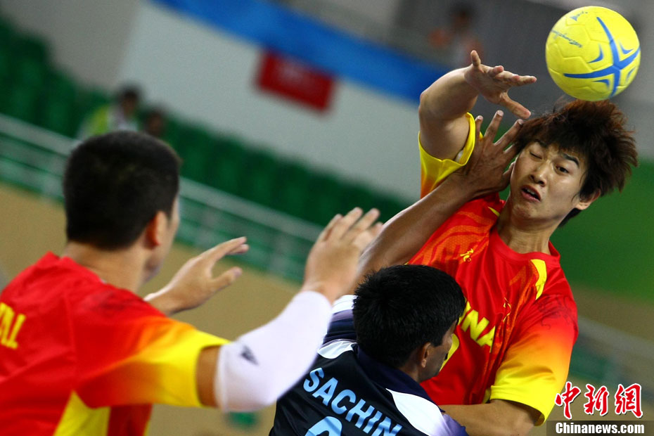 11月13日上午,中国选手袁晓超夺得男子长拳冠军,这也是本届亚运会诞生的首枚金牌。 中新社记者 柯小军 摄