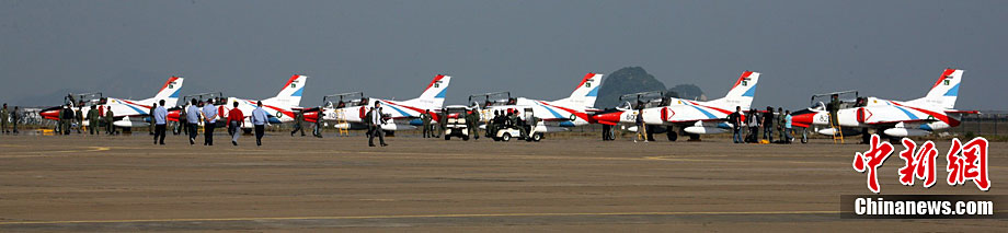 11月12日,参加第8届中国国际航空航天博览会的中外飞机陆续抵达珠海。图为警200停在展场。图片来源:CNSPHOTO 乔天富 摄