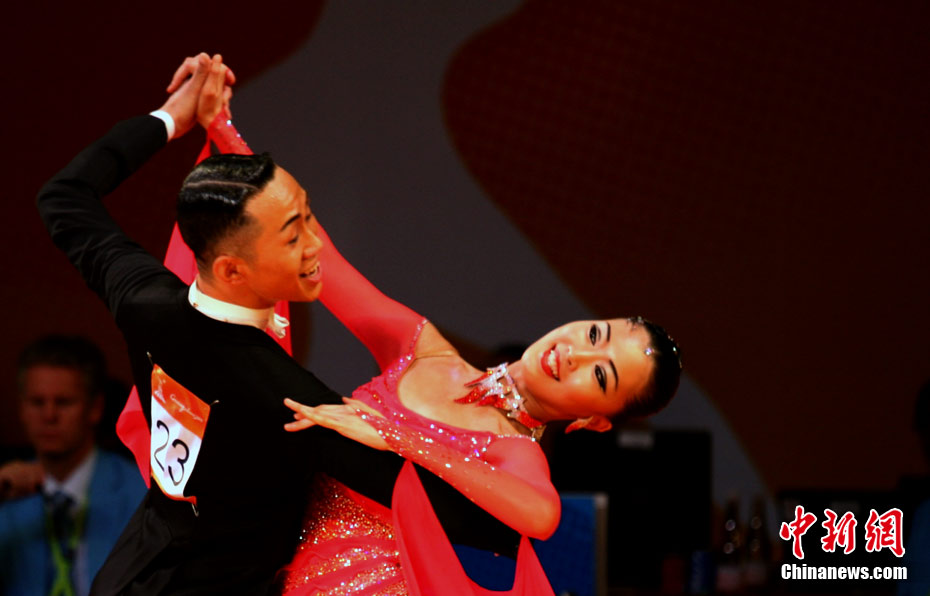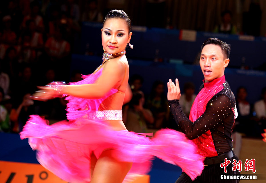 11月13日,首次成为亚运会正式比赛项目的体育舞蹈比赛在广州增城体育馆拉开帷幕。来着亚洲的顶尖舞者将在两天的时间里角逐十个项目的金牌。选手们首先在标准舞华尔兹、探戈、狐步、快步和拉丁5项舞五个项目中给观众带来美轮美奂的享受。中新社记者 张茵 摄