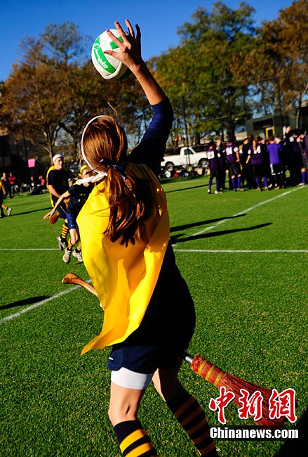 当地时间11月13日,数百名哈利波特迷们在美国纽约举行了第四届魁地奇世界杯比赛。看过《哈利·波特》小说或电影的人都会对其中描写的魁地奇球赛印象深刻。现实版的魁地奇比赛严格遵循原著风格,并发展成了一项混合手球、躲避球,还掺杂了一点曲棍球的新奇运动。