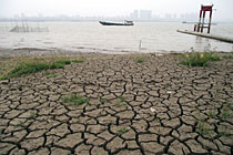 截至2010年11月14日17时,长江南京段水位降至4.08米,大片江岸河床裸露。近期,受中上游枯水和区域降雨量减少等因素影响,长江南京段水位连续下降。图为11月14日,长江南京段南侧江岸河床裸露,土层龟裂。图片来源:CNSPHOTO 安东 摄