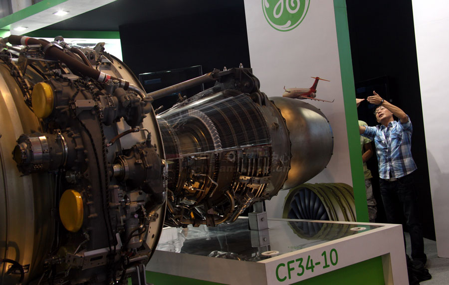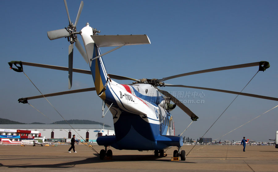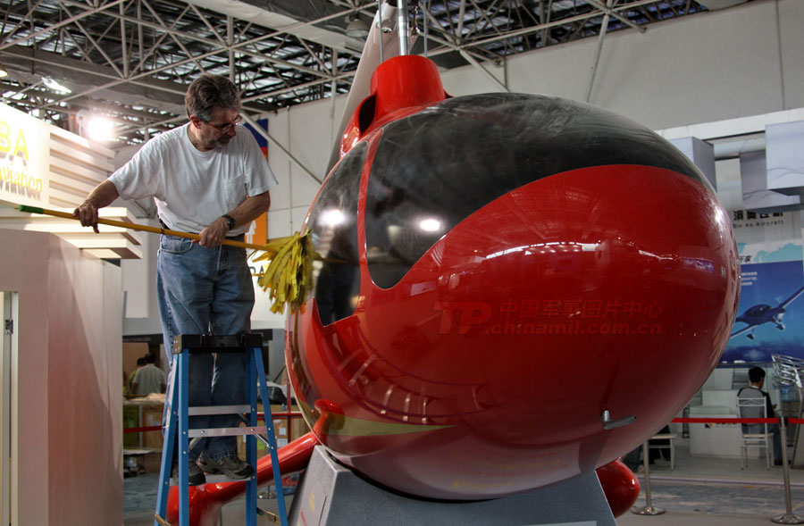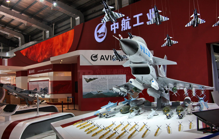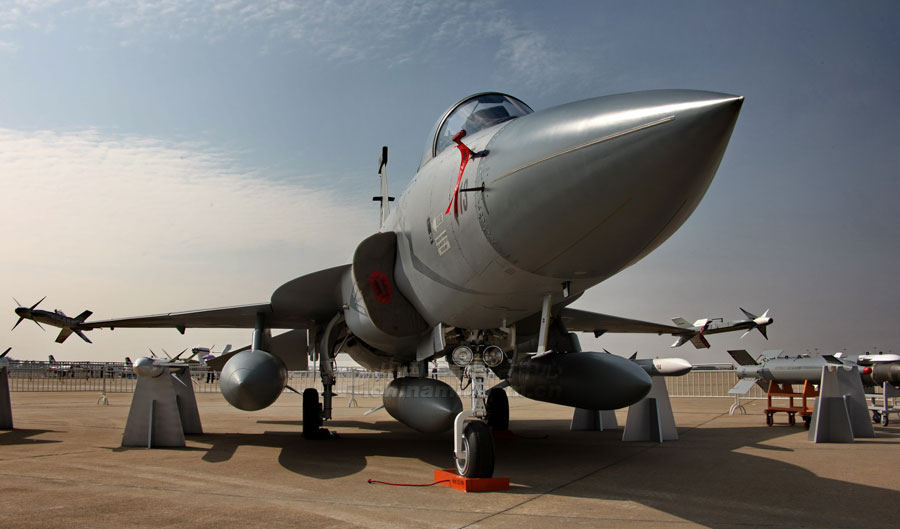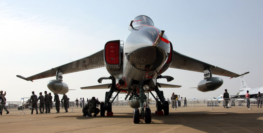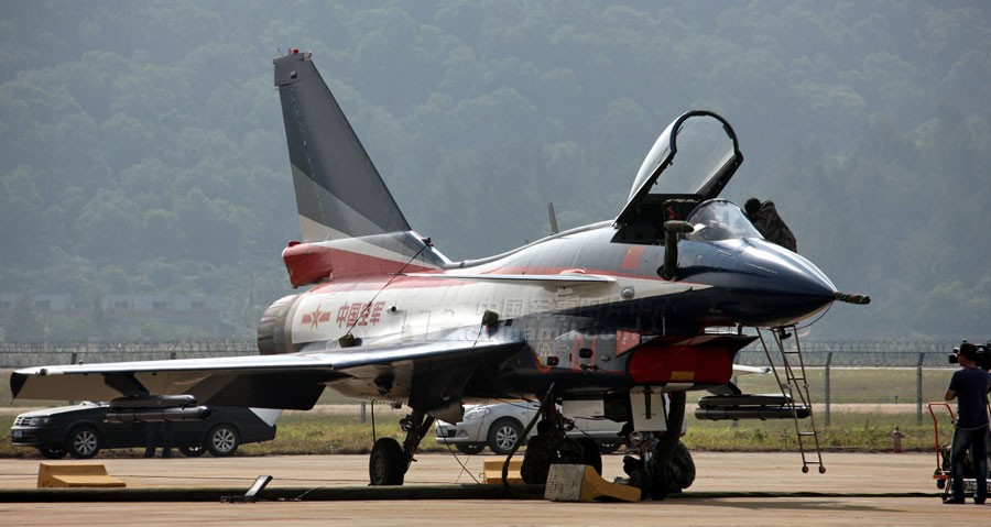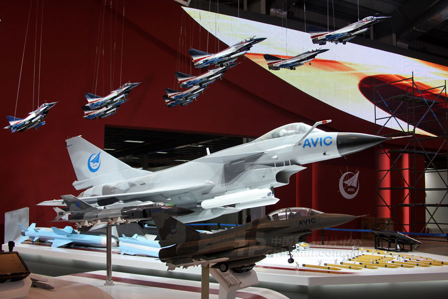 11月14日,参加第8届中国国际航空航天博览会的各场馆基本布置就绪。图为歼10表演机。图片来源:中国军网 乔天富 摄