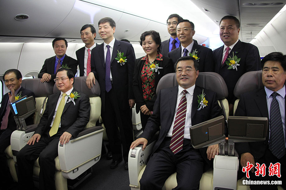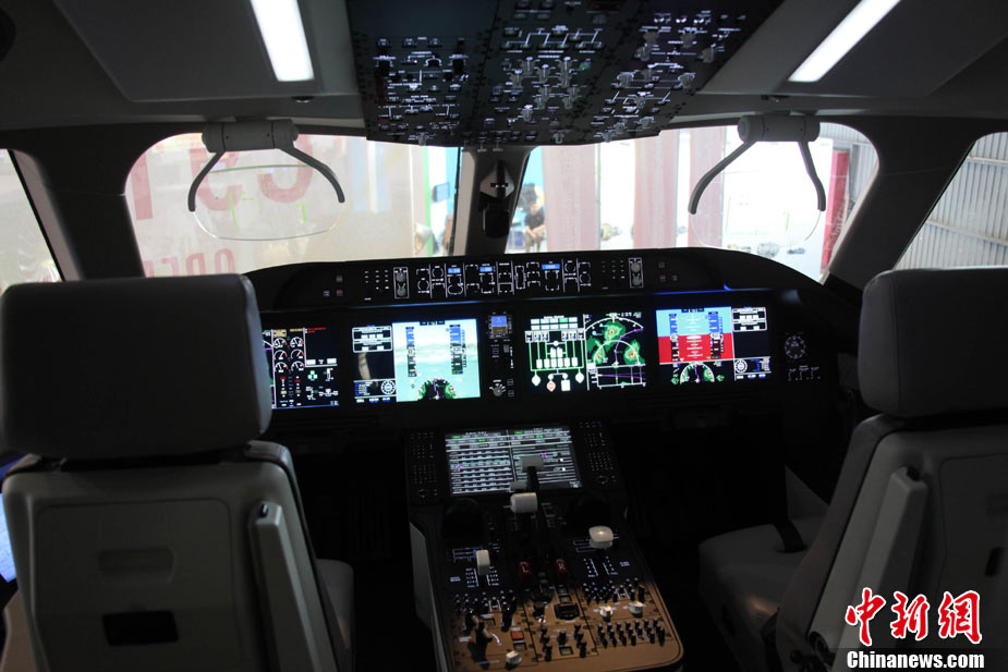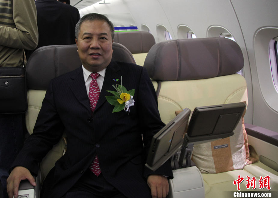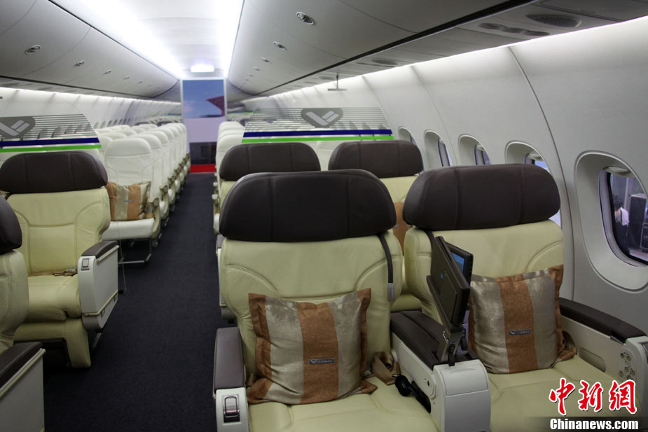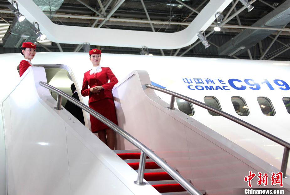11月15日下午,中国C919大型客机展示样机在珠海航展揭幕,这是中国C919大型客机1:1展示样机首次亮相。中国C919大型客机是中国拥有自主知识产权的中短程商用干线飞机,其基本型全经济级布局为168座,混合级布局为156座,其标准航程型设计航程为4075公里,增大航程型设计航程为5555公里。按计划,C919大型客机2010年完成初步设计,2012年完成详细设计,2014年实现首飞,2016年完成适航取证并投放市场。中新社记者 孙自法 摄