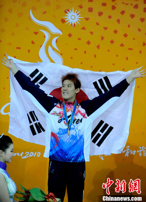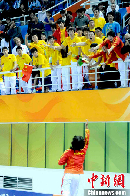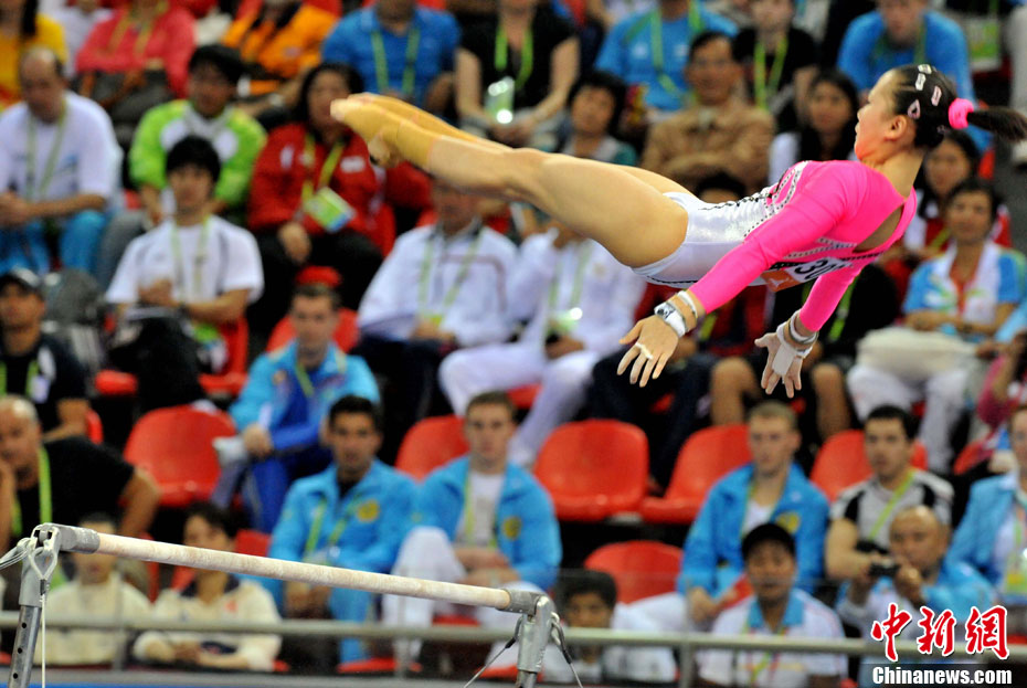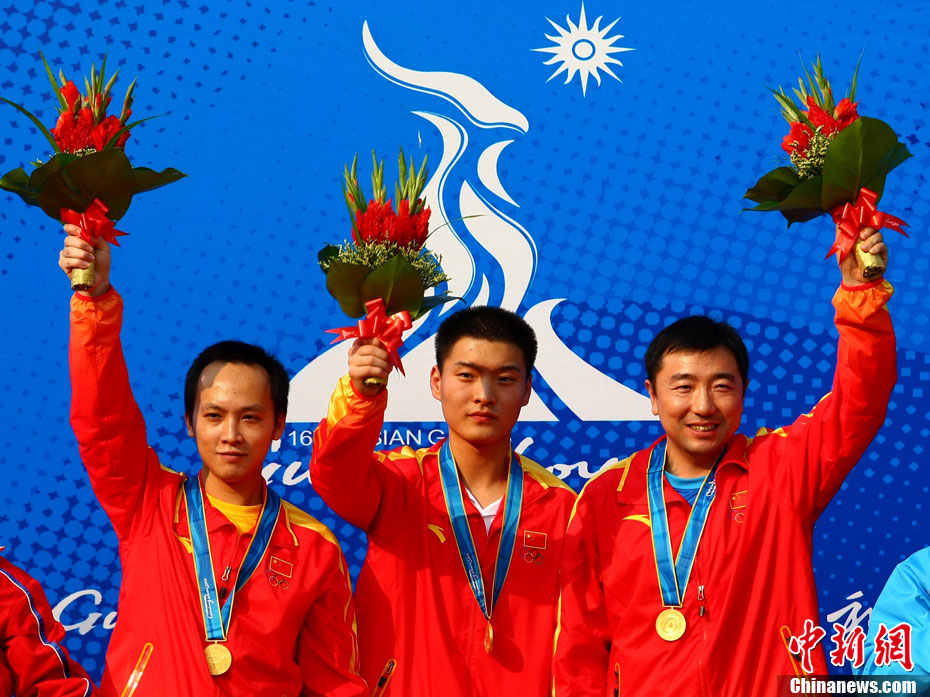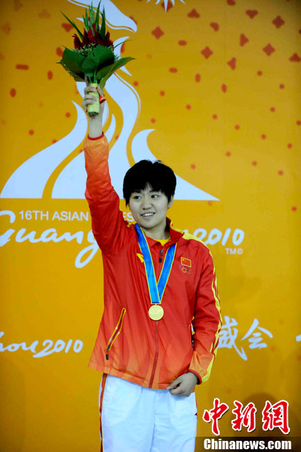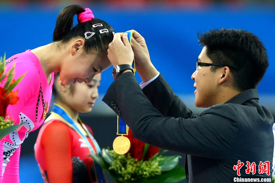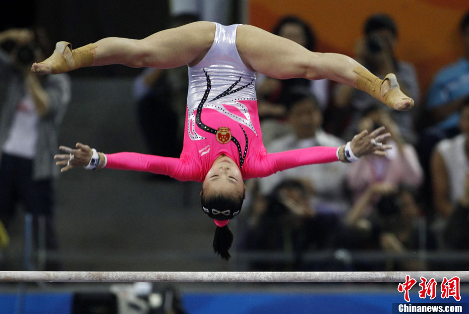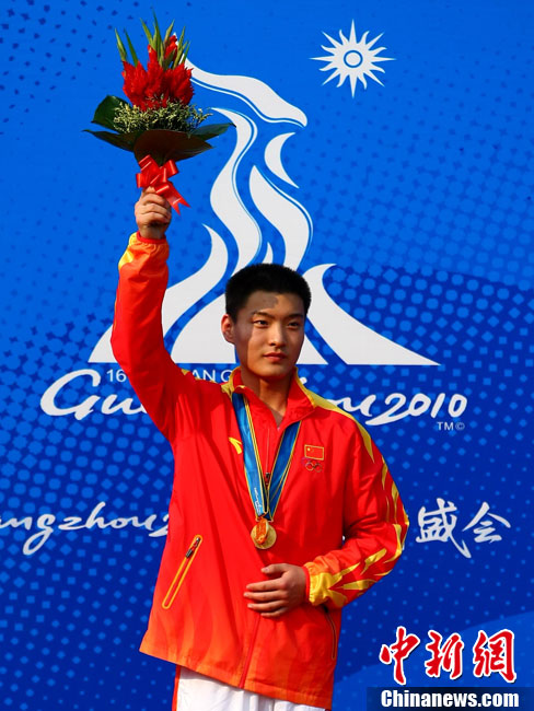 11月16日,2010年广州亚运会体操比赛继续在亚运城体育馆进行。在男子鞍马决赛中,雅典奥运会冠军、中国名将滕海滨(图)以15.375分如愿摘金;银牌被另一位中国选手严明勇获得,成绩为14.726;中华台北选手黄哲奎以14.70分排在第三。这已是滕海滨在本届赛事中,继男子团体和个人全能之后收获的第三块金牌。中新社记者 富田 摄